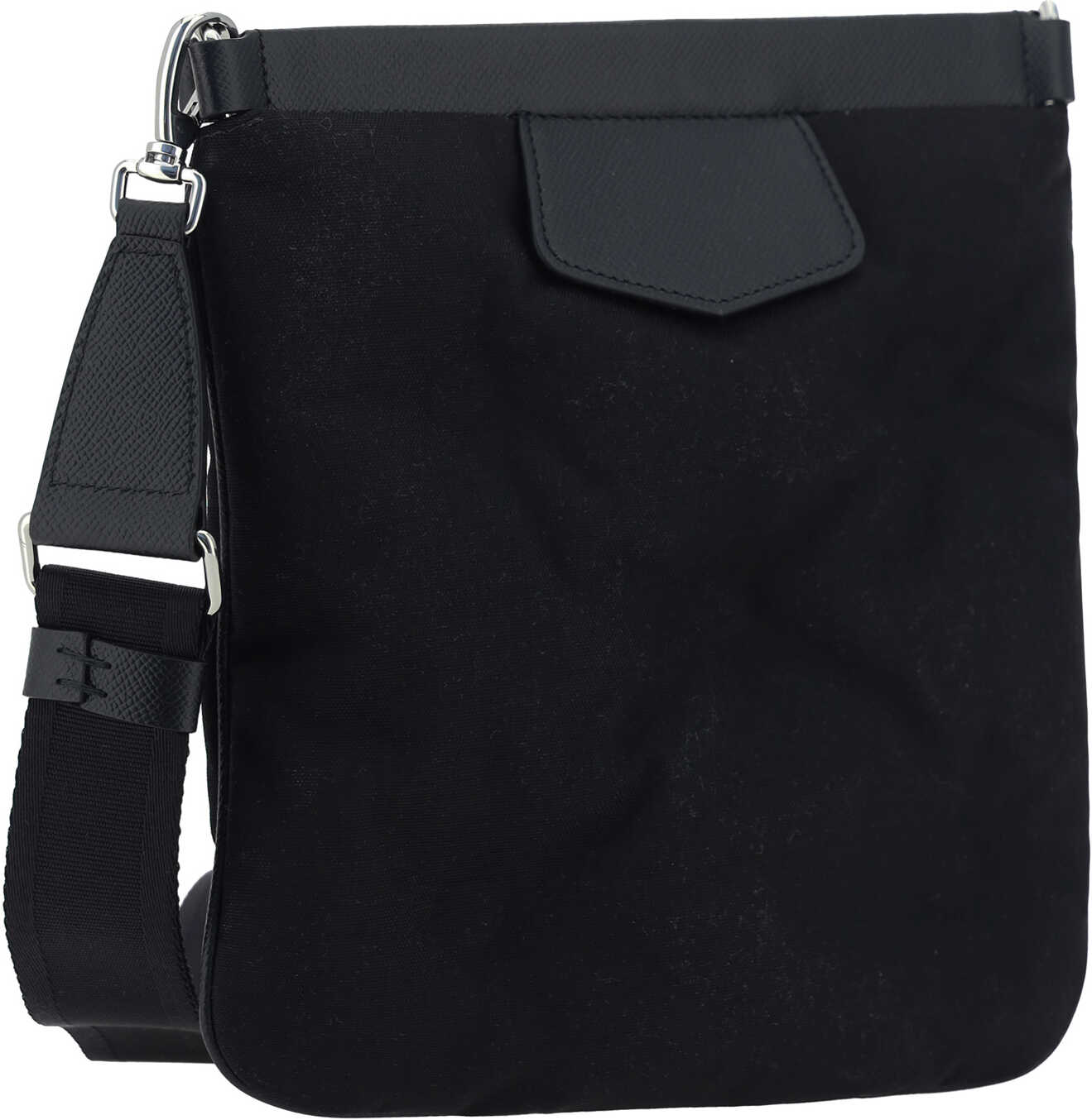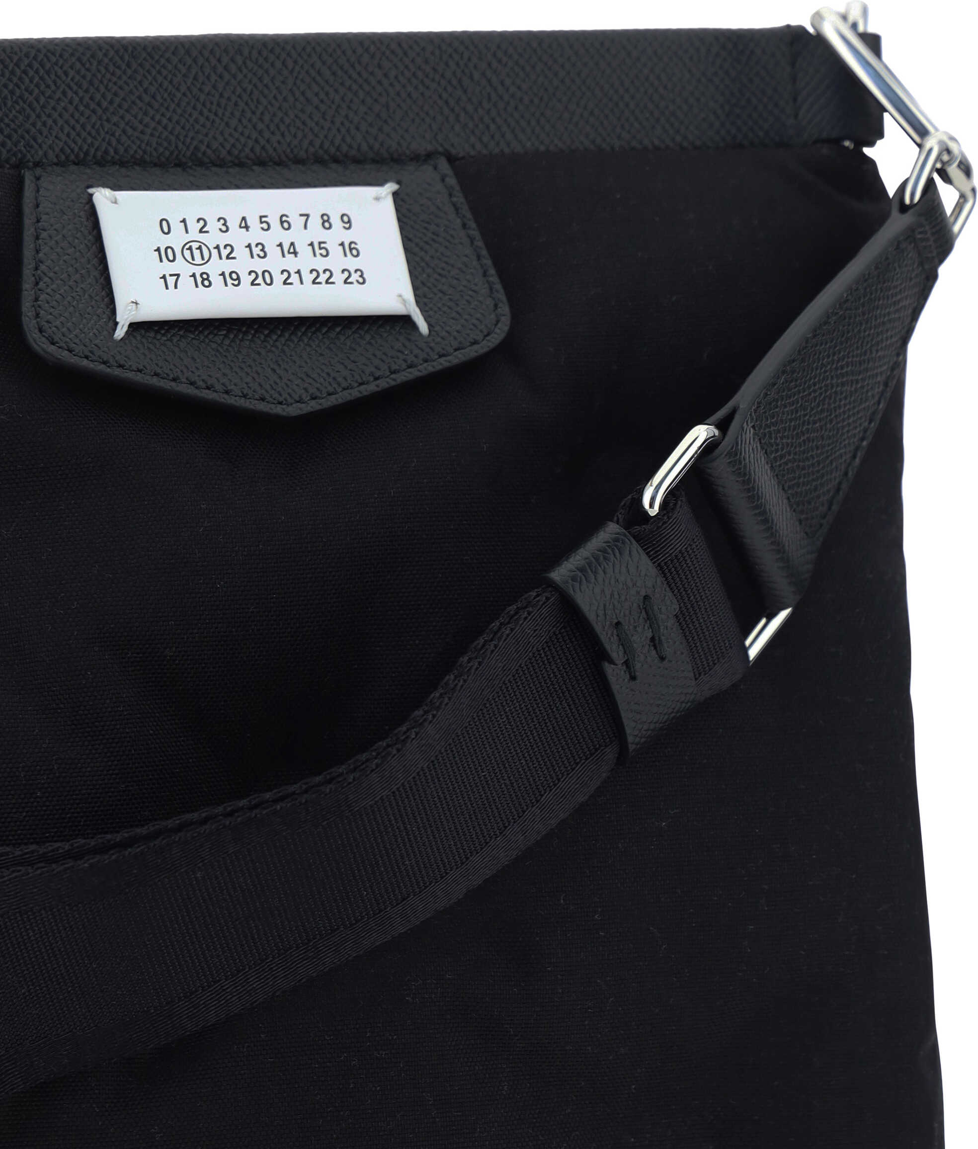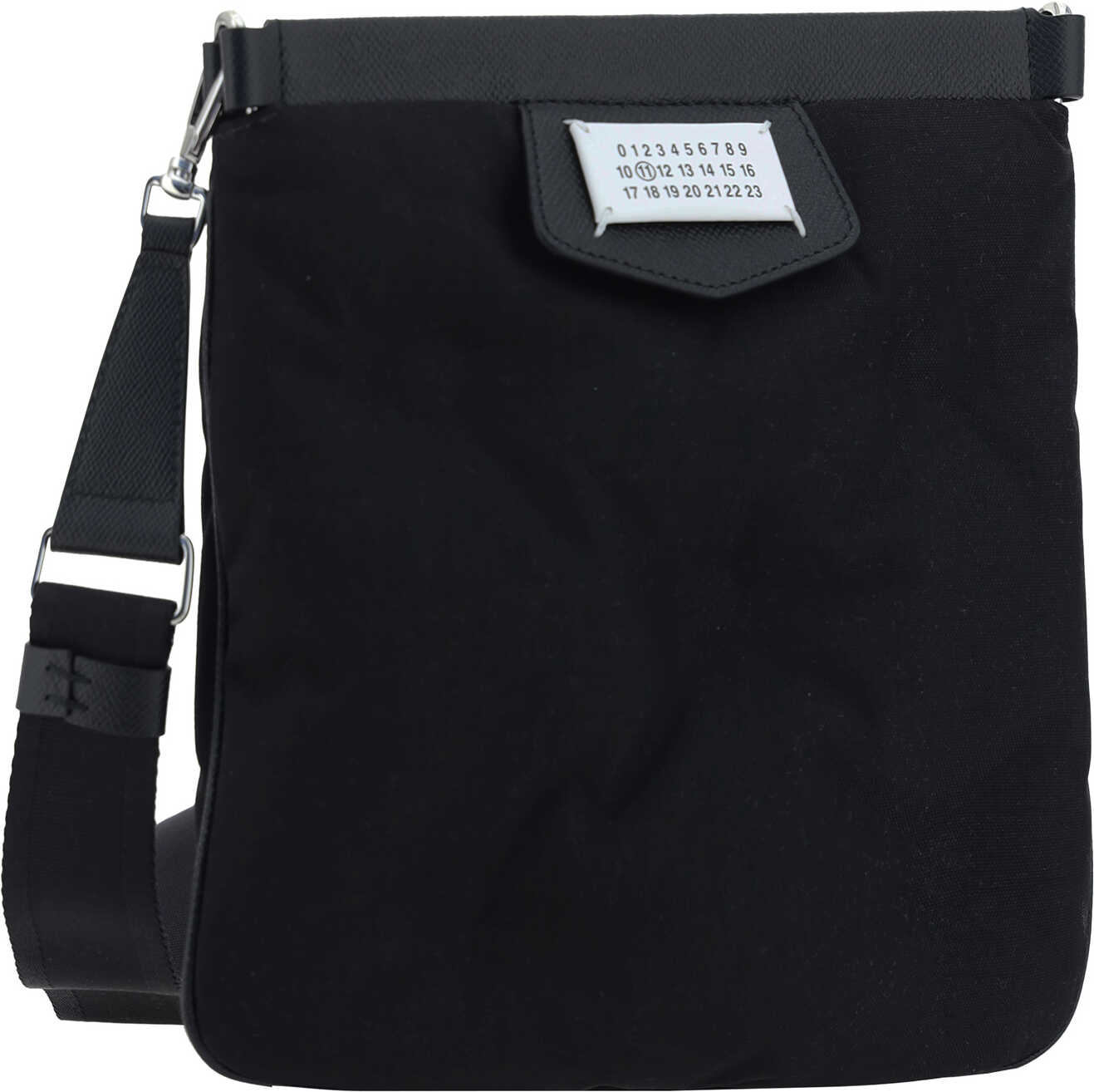 Nylon Glam Slam Shoulder Bag by Margiela featuring padded and quilted design, removable and adjustable leather shoulder strap, magnetic top closure, iconic contrasting embroidered brand signature patch on front, interior welt pocket.