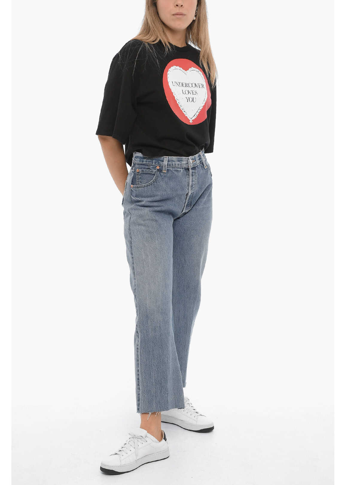 Ankle: 27cm Logo Denim cotton Buttons Contrasting stitch detailing Flare and wide leg Blue Made in USA Autumn-Winter Materials: 100%CO Product code: P599020 Model is wearing size 27 Model measurements Height: 174 cm Chest: 82 cm Waist: 63 cm Hips: 88 cm