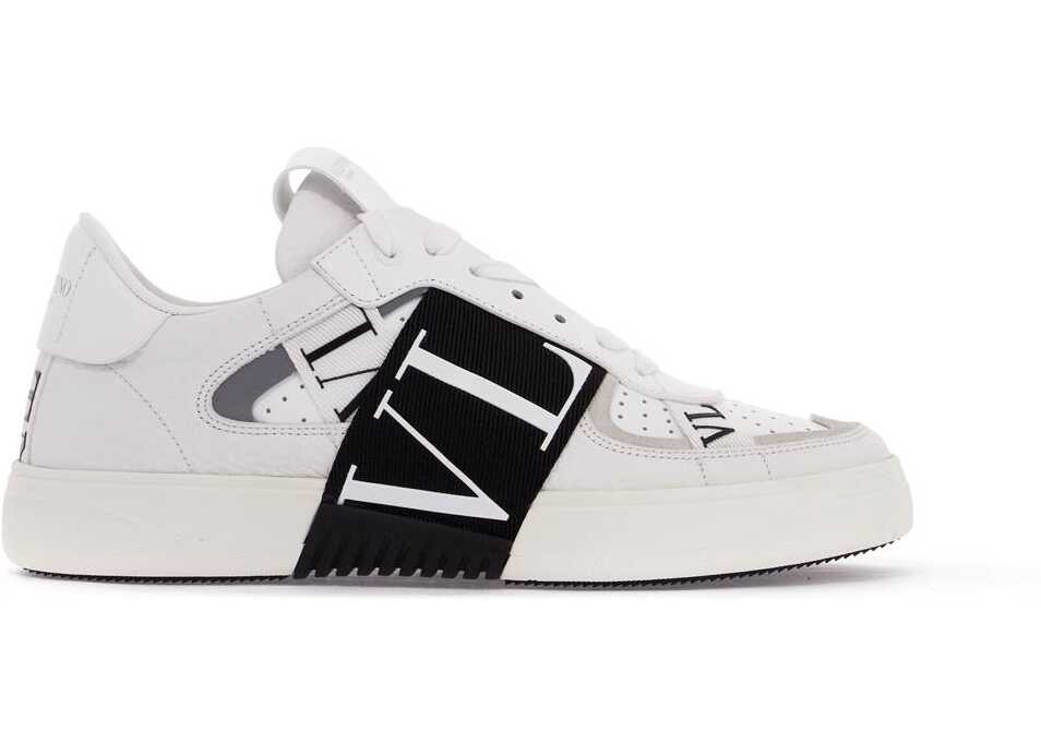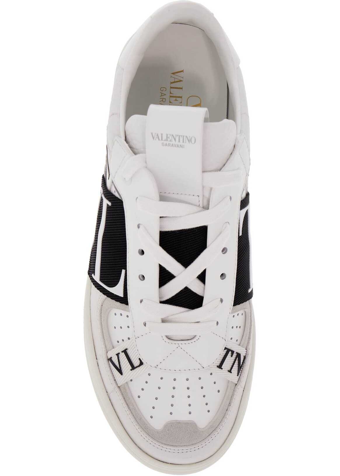 VL7N low-top sneakers by Valentino Garavani crafted in grained leather with suede inserts and contrasting ribbons featuring rubberized logo. Perforations on toe and sides, smooth leather logoed inserts on tongue and heel tab, leather-lined interior with removable insole and rubber sole. Spare laces included.