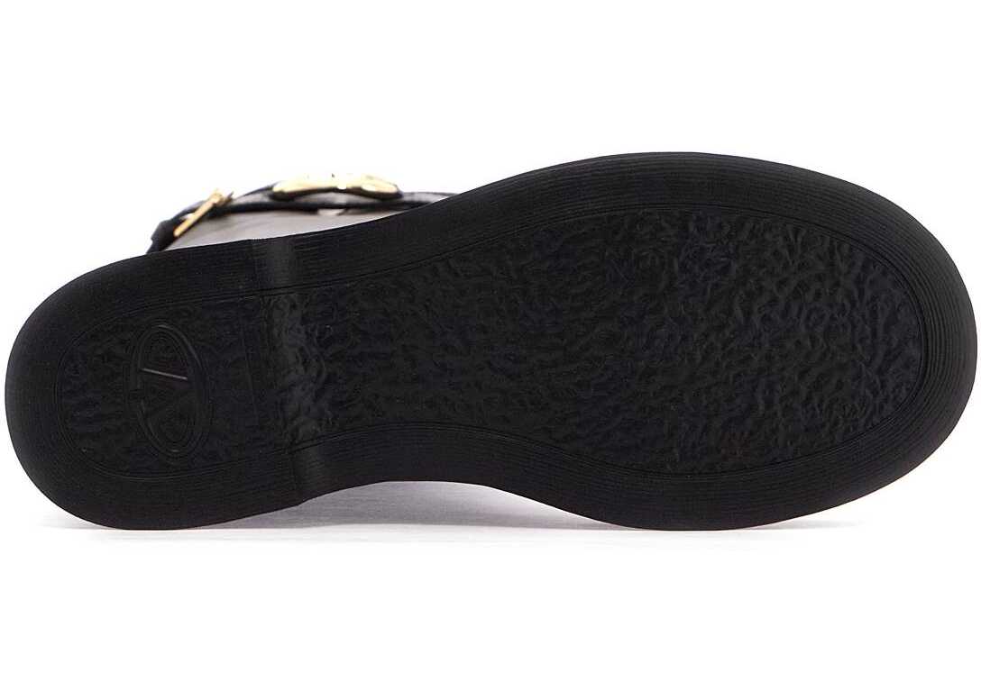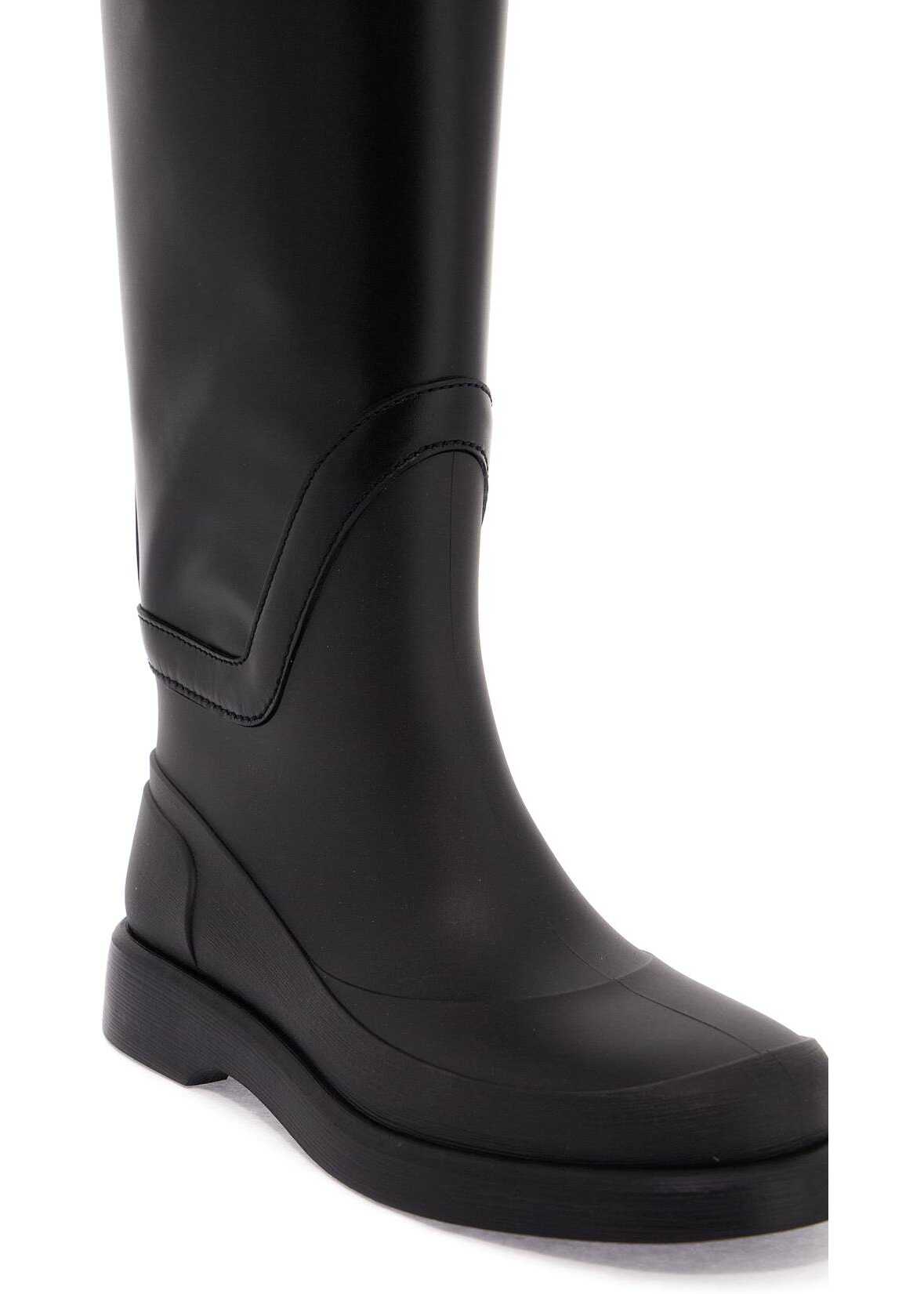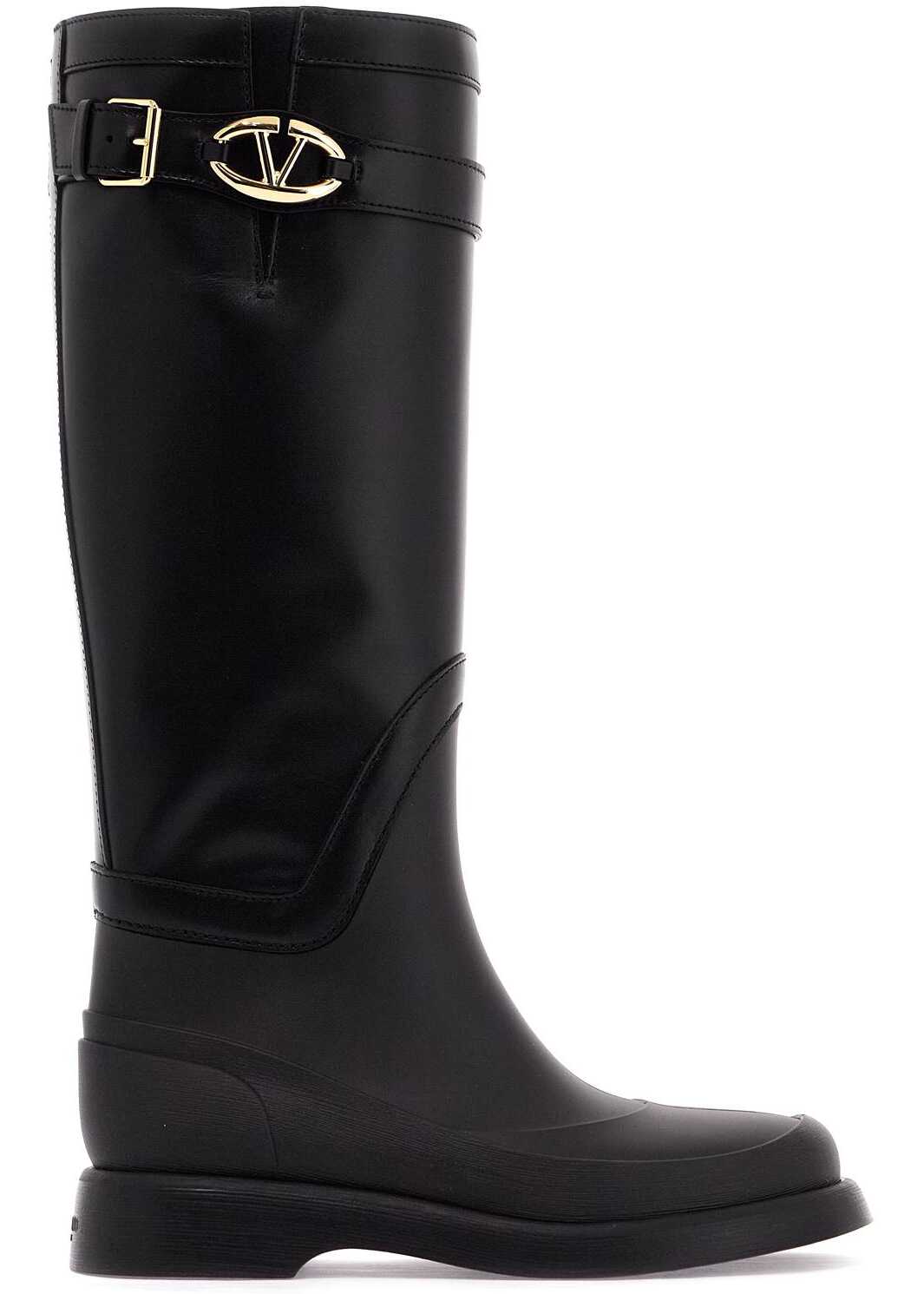 Valentino Garavani rain boots characterized by a two-material upper with the bottom part in rubber and the shaft in soft leather. Adjustable ankle strap decorated with The Bold Edition VLogo element in golden metal, partially lined interior in leather with removable insole, textured rubber sole.