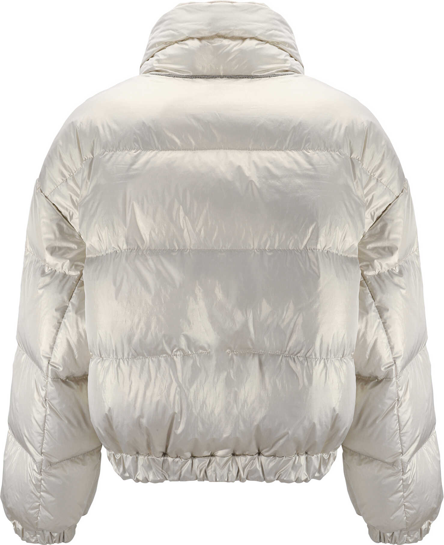 Virgin Wool Reversible Down Jacket by Brunello Cucinelli featuring a high collar, a front panel zipper closure, two side welt pockets, elasticated cuffs, an elasticated hem, an all-over quilted and padded design, a monochrome pattern, and a regular fit.