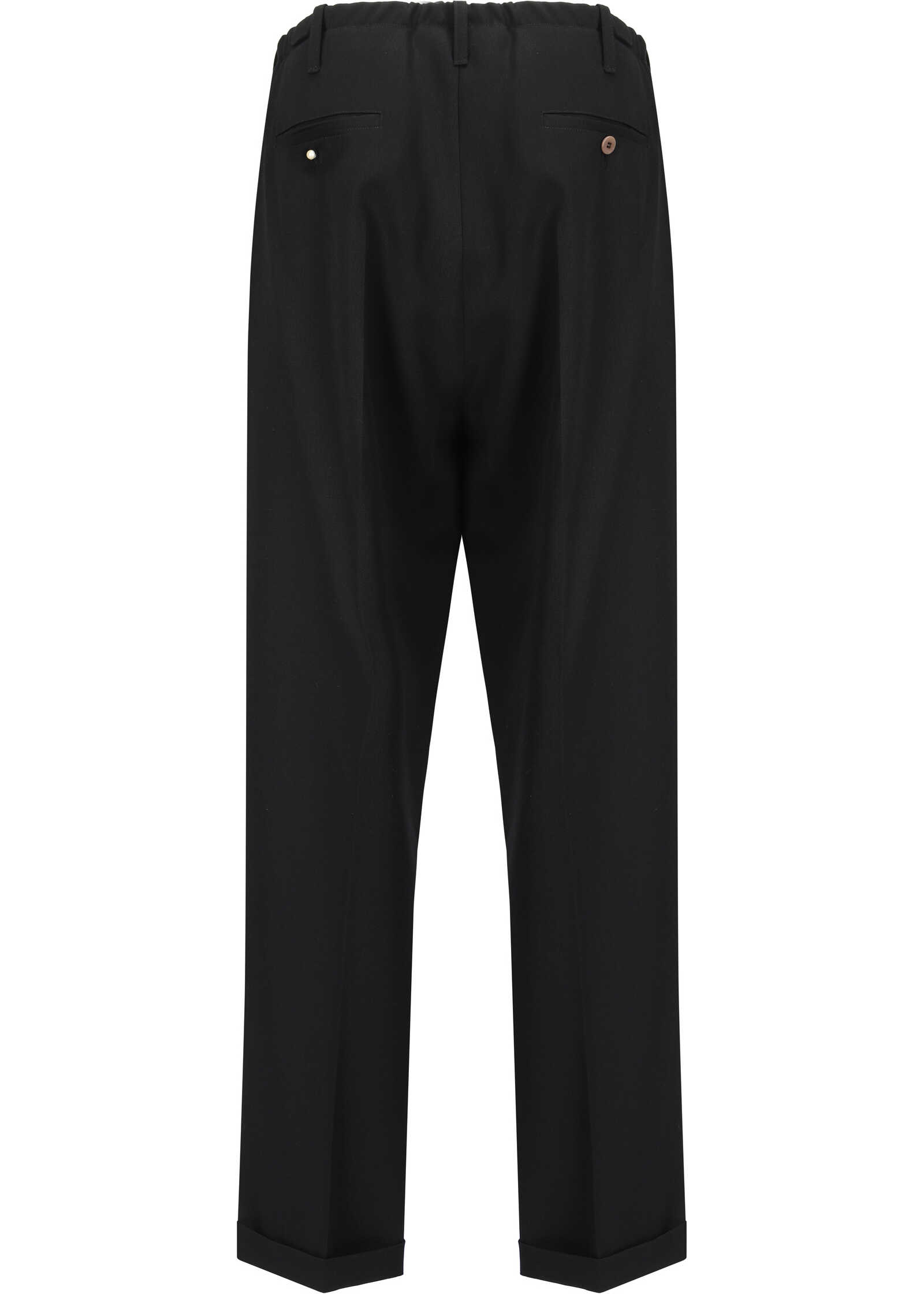Magliano Virgin Wool People Pants, adjustable elastic waistband with inside drawstring, front zipper closure, two side slash pockets, two welt pockets on back, waistband belt loops.