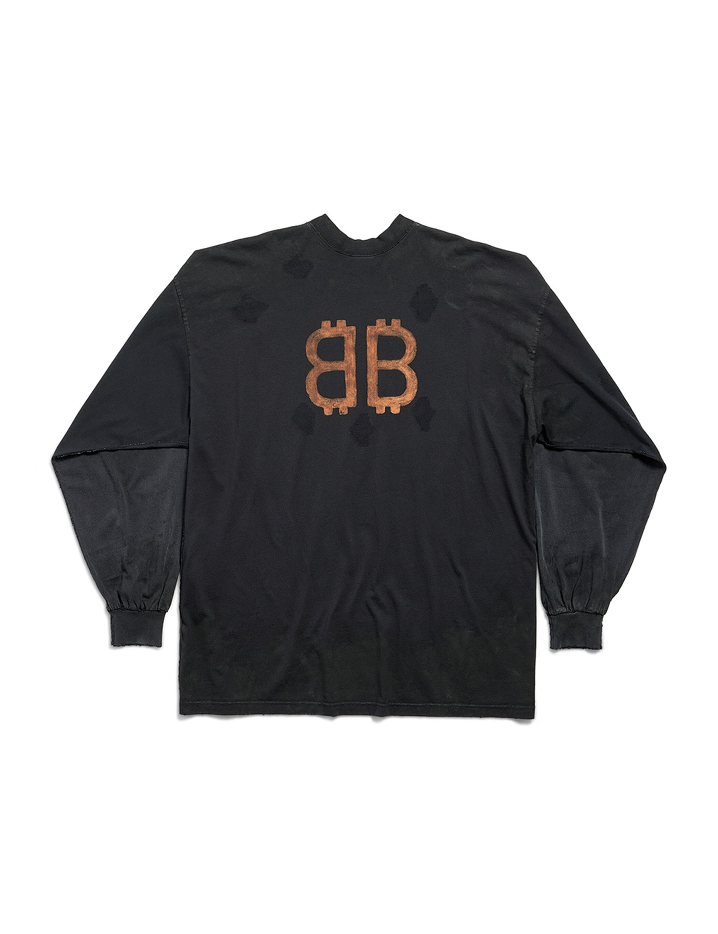 Cotton Sweatshirt by Balenciaga, ribbed crew neck, ribbed cuffs, ribbed hem, maxi print with contrasting iconic brand monogram on front, contrasting iconic brand logo on back, vintage worn effect design, oversize fit.