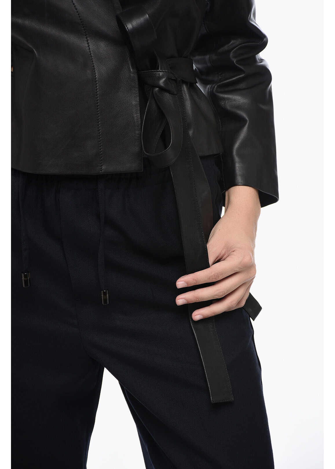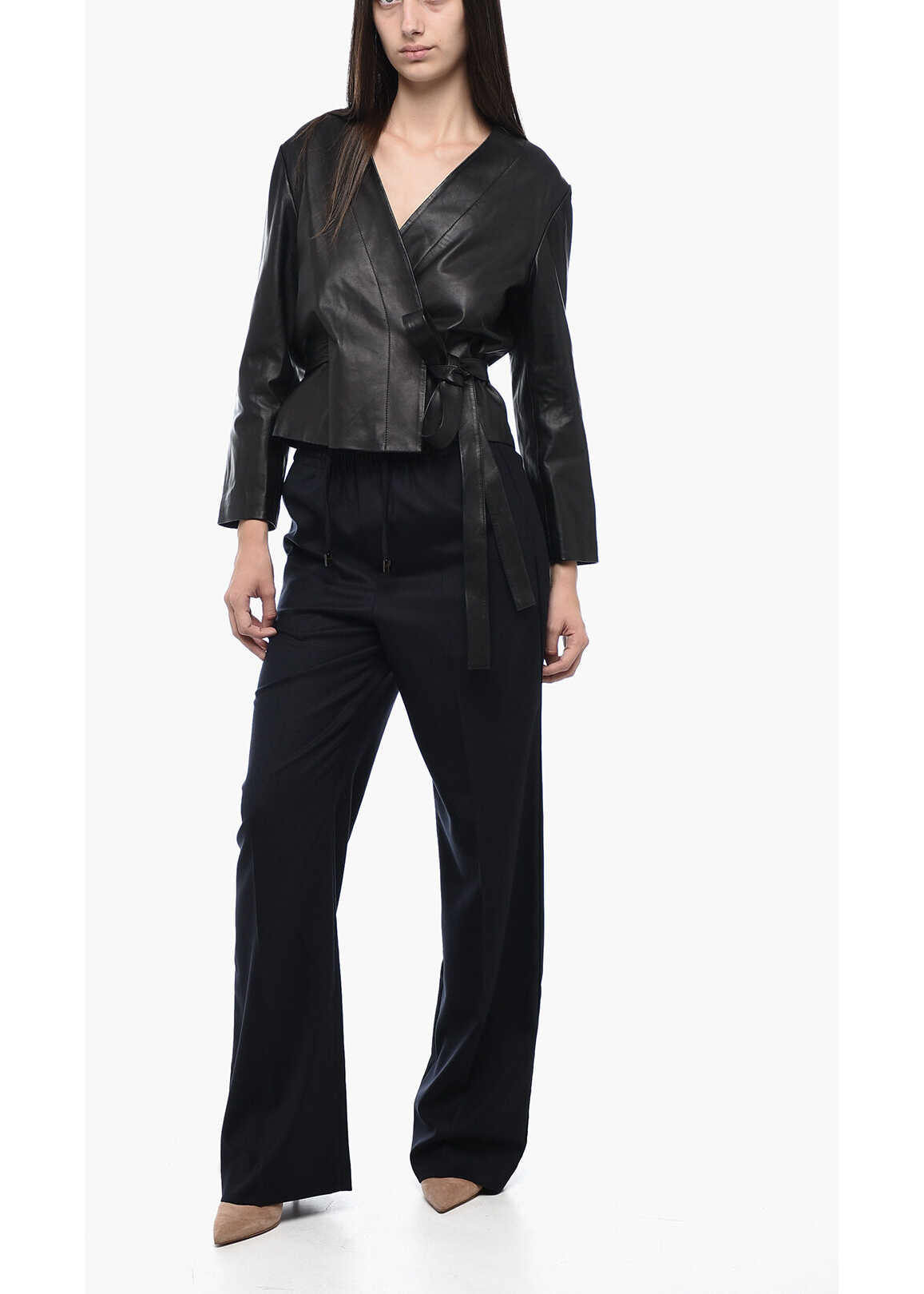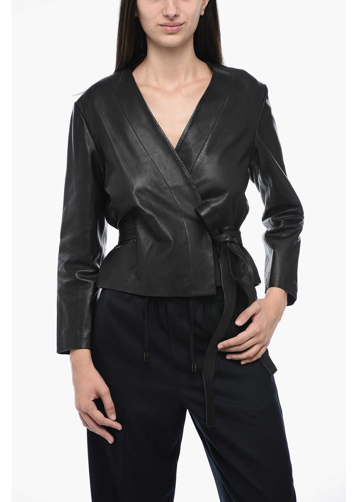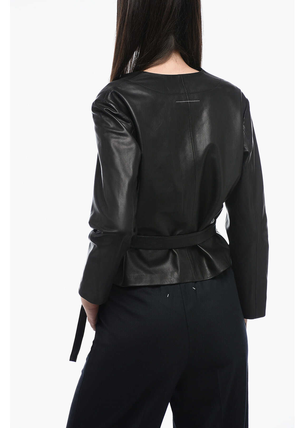 Mm6 Leather Wrap Top With 3/4 Sleeves