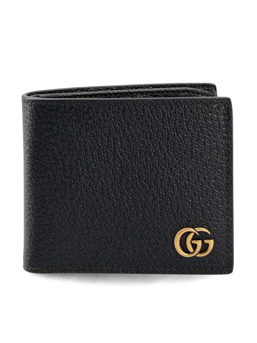 - Material: 100% calfskin - Color: black - Interior: 8 card slots and two bill compartments - Other details: GG logo applied on front - Made in Italy - Dust bag - Item code: 428726DJ20T1000 - Dimensions: Open: W 21 cm x H 9 cm Closed: W 11 cm x H 9 cm