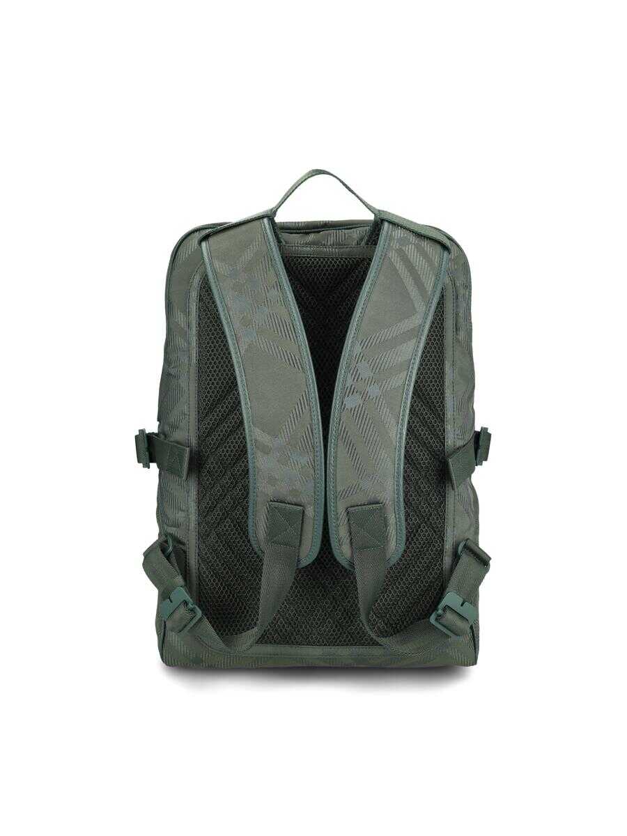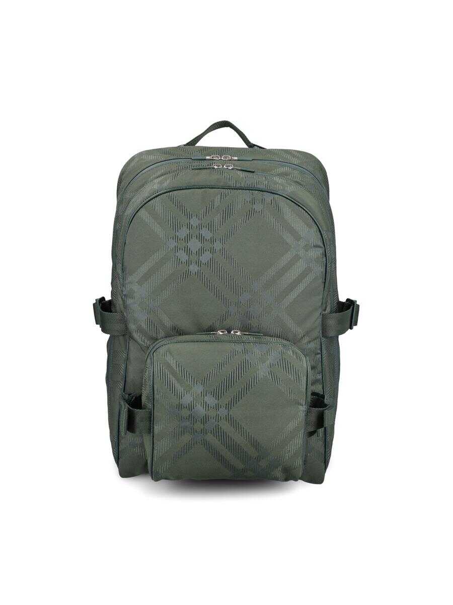 - Material: 78% polyamide, 22% polyester - Color: green - Interior polyamide lining - Other details: all-over Burberry Check pattern - Adjustable shoulder straps - Zip closure - Dust bag - Item number: 80808411B7325 - Size: 31 x 18 x 47 cm