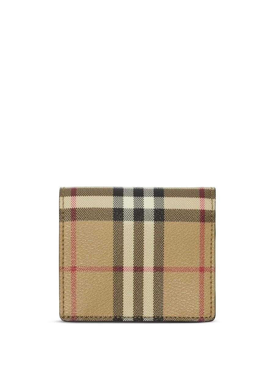 calf leather gold-tone logo plaque Vintage Check pattern embossed internal logo bi-fold design concealed front press-stud fastening internal card slots DEPTH: 3.0 Centimetres HEIGHT: 8.5 Centimetres WIDTH: 10.0 Centimetres