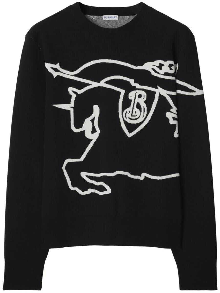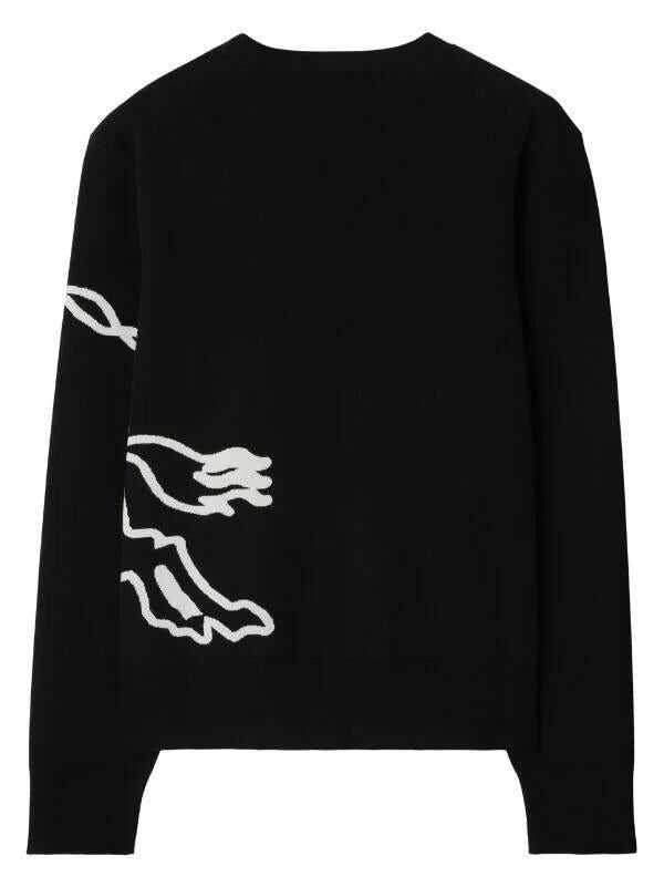 black cotton signature Equestrian Knight motif embroidered logo to the front ribbed band collar drop shoulder long sleeves ribbed cuffs and hem straight hem