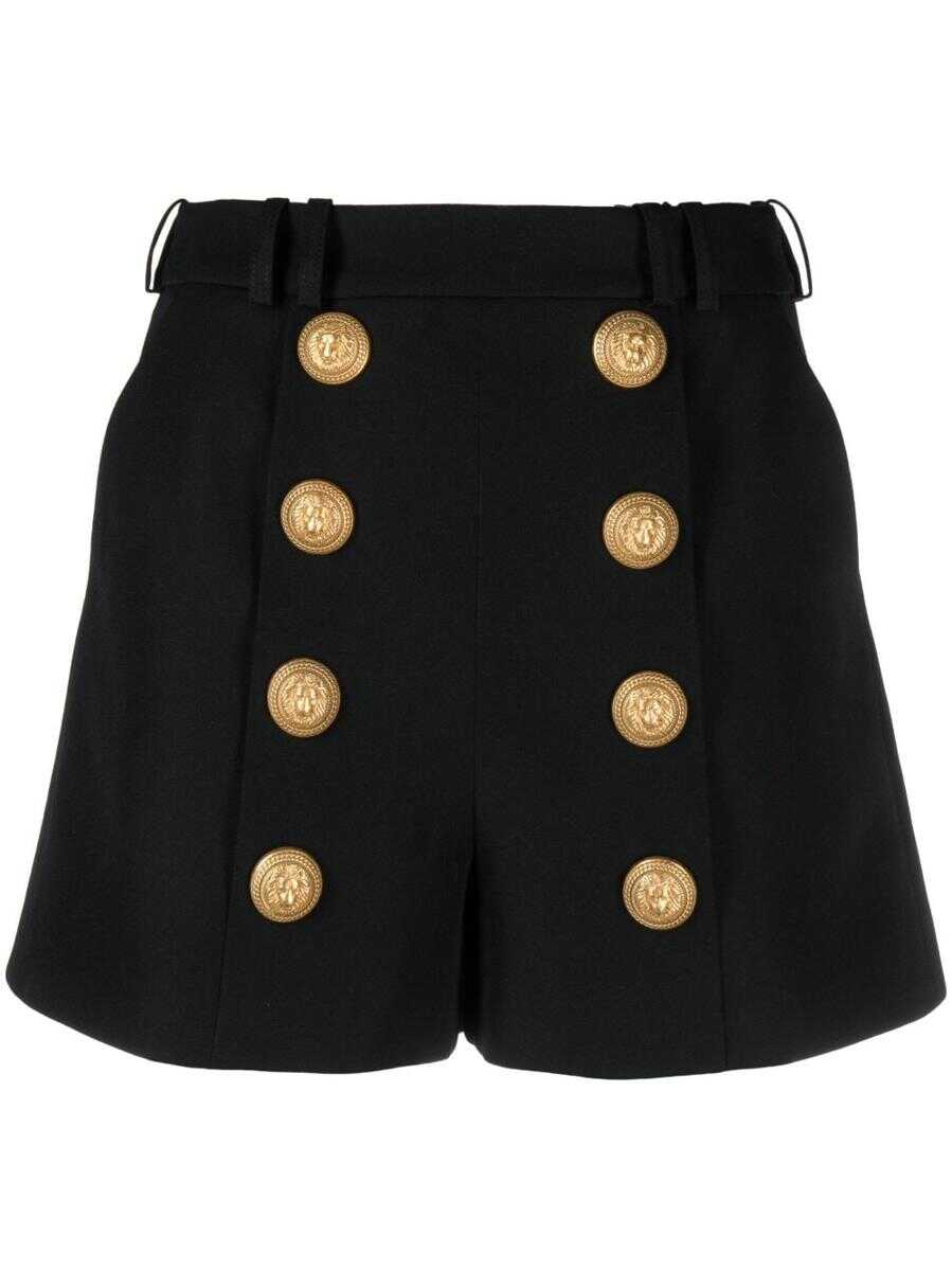 black virgin wool tailored cut embossed gold-tone buttons high waist rear zip fastening This item contains at least 50% materials which are certified or widely recognised as having a lower environmental impact through production and/or manufacturing processes that reduce water consumption and the use of harmful chemicals, or re-use by-products of the production process. Learn more about what makes a product Conscious on our Conscious Criteria page