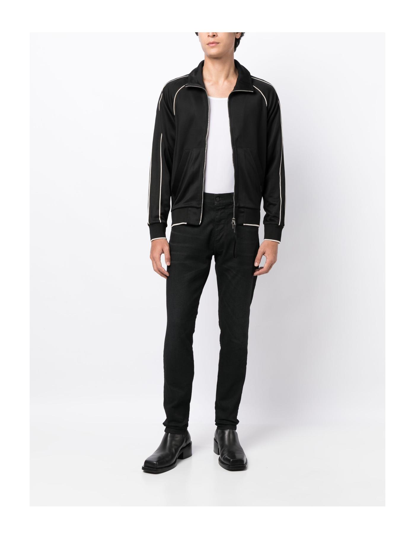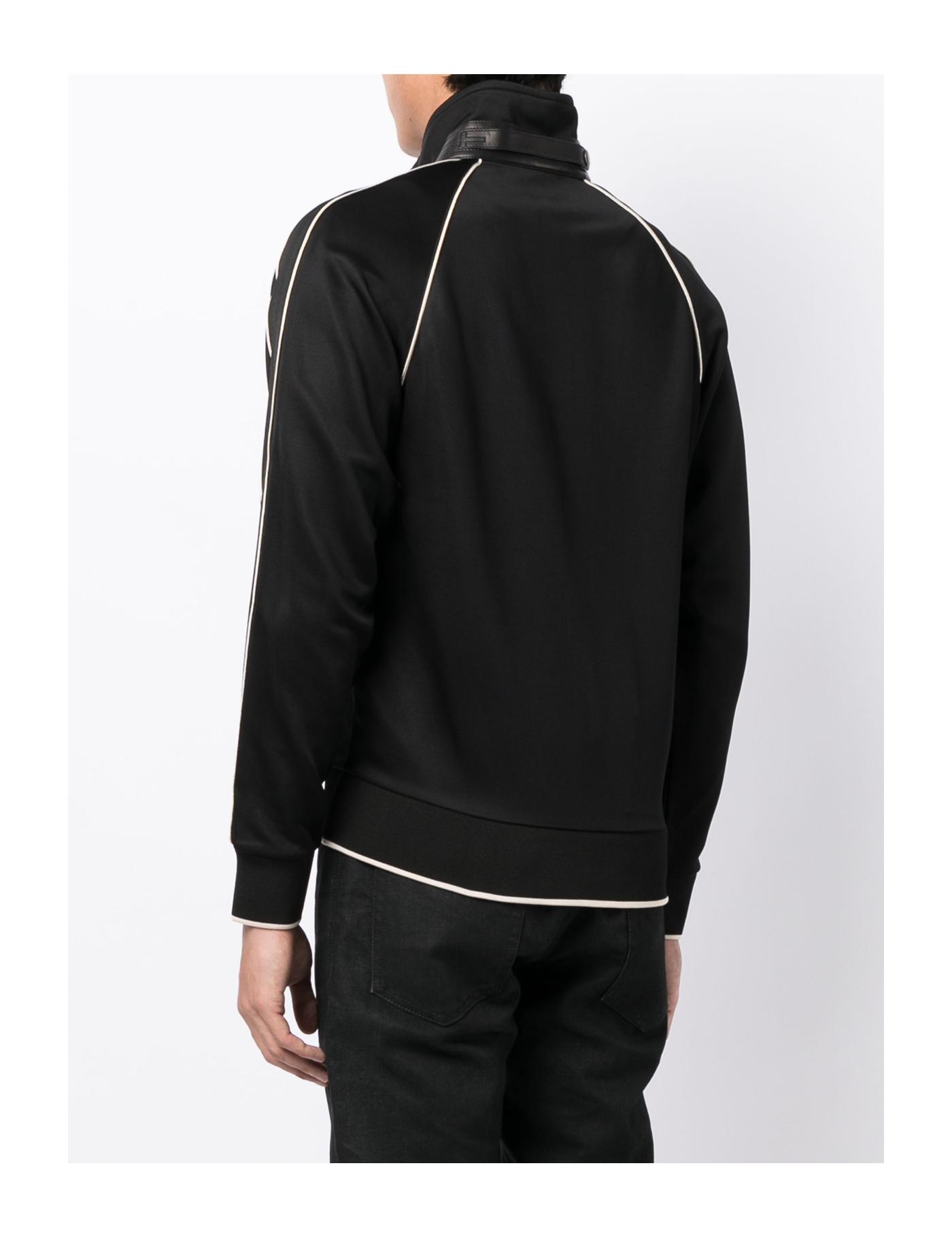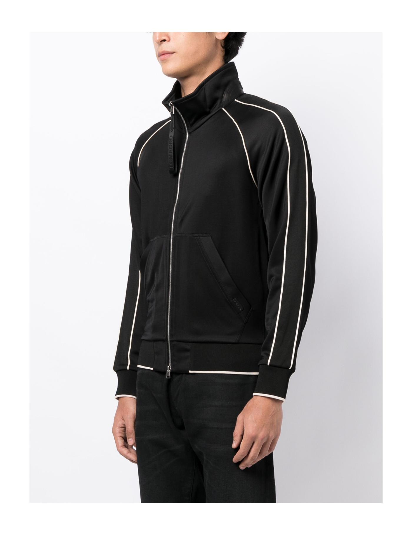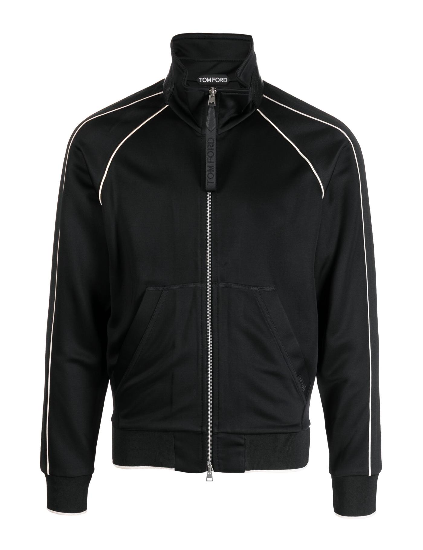 TOM FORD lends its signature sense of sophistication to a sporty style with this track jacket. Arriving in a sleek black colourway, it is enhanced with contrasting piping and boasts a mini logo tag to the front.
