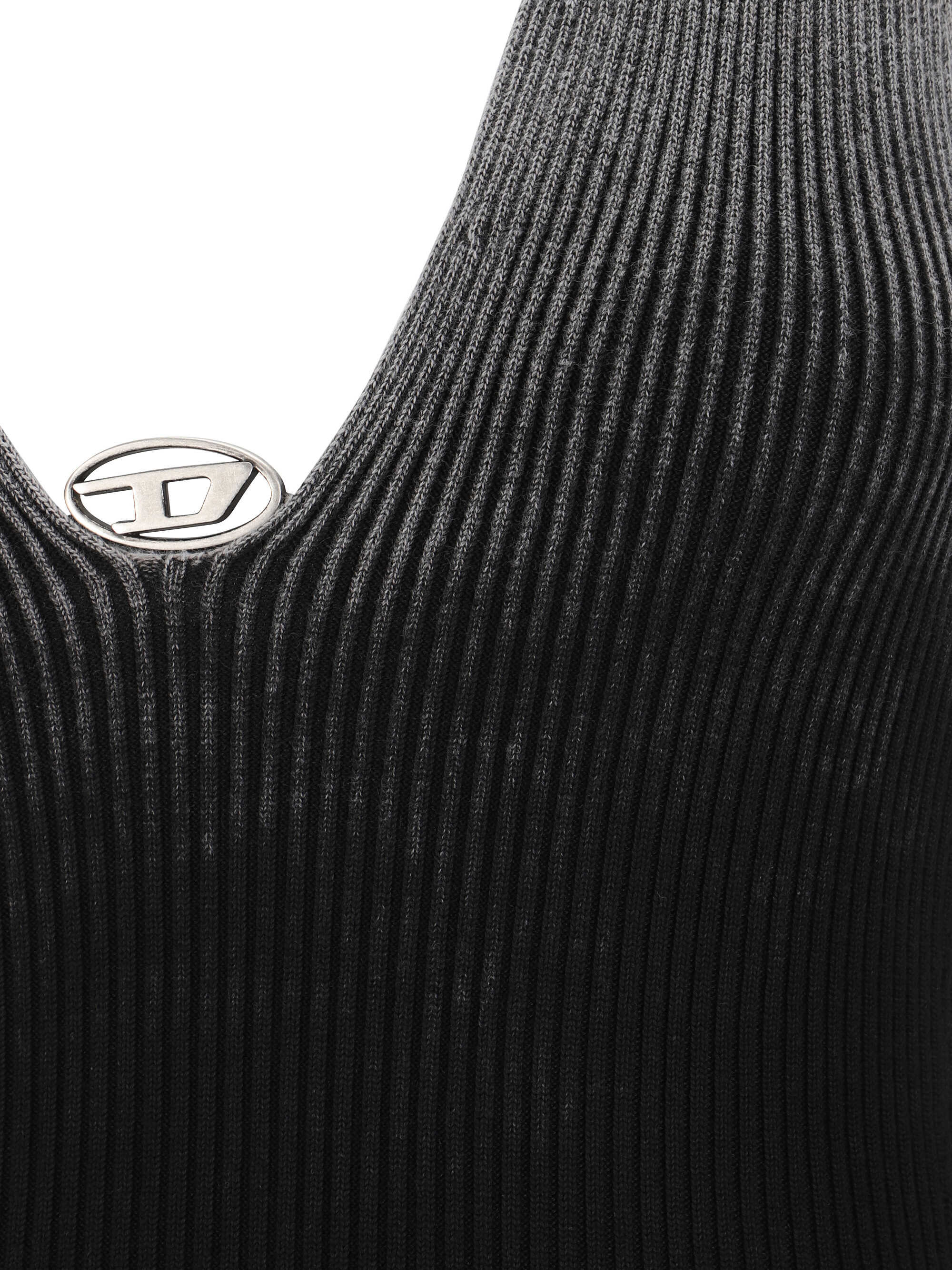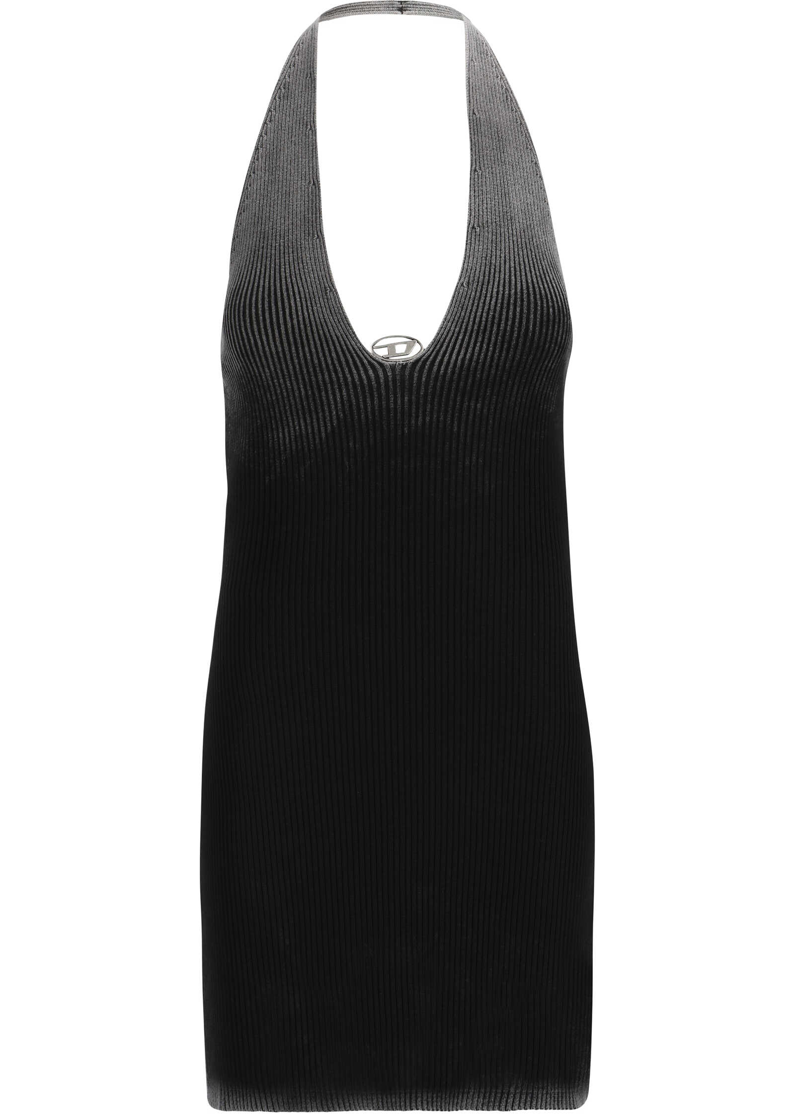 Cotton Mini M-Larisa Dress by Diesel, sleeveless design, scoop neckline, all-over ribbed design, three-dimensional iconic brand logo plaque detail applied at front, monochrome pattern, slim fit.