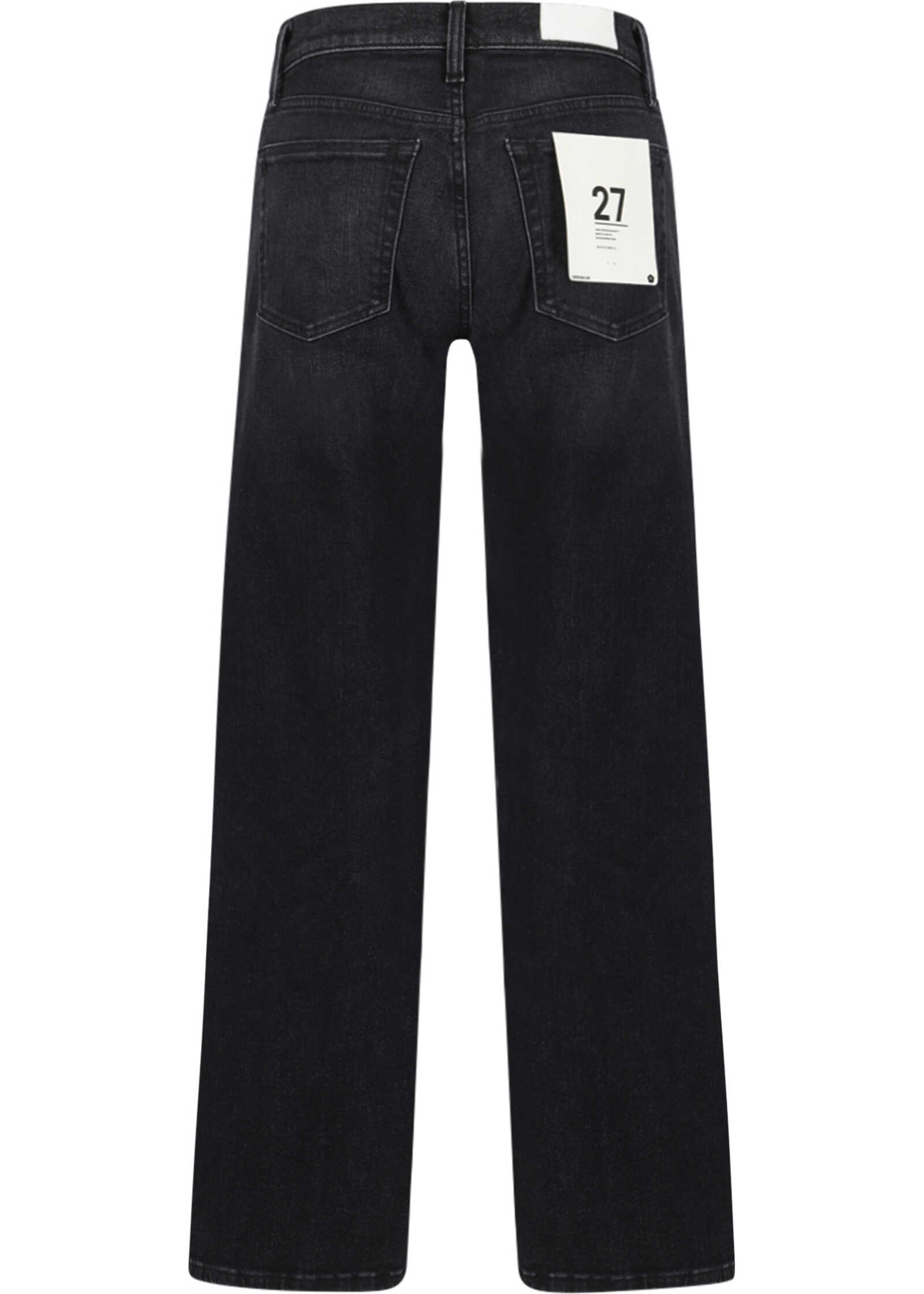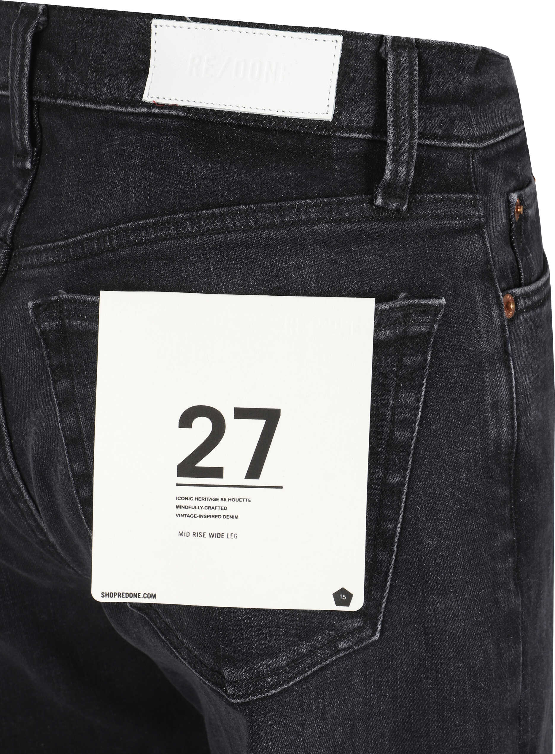Cotton Denim Pants by Re/Done, wide-leg five-pocket style, front button closure, belt loops waistband, iconic leather patch with brand signature pressure print applied at back.