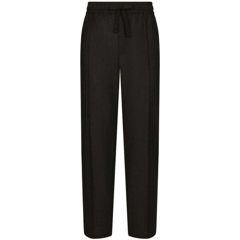 Dark grey wool mélange effect mid-rise pressed crease drawstring fastening waist straight leg slip pockets to the sides