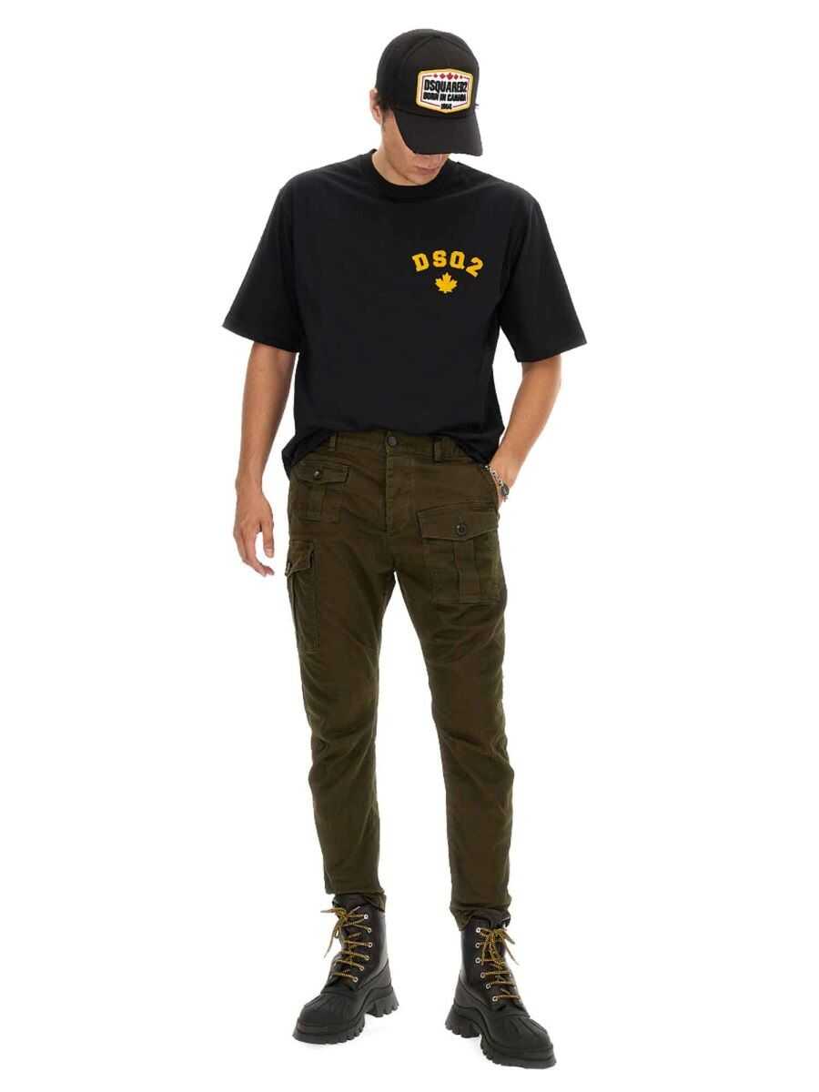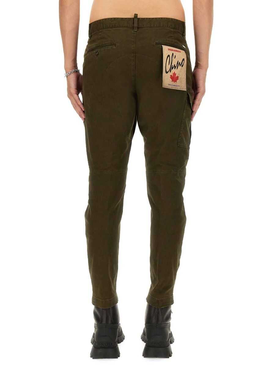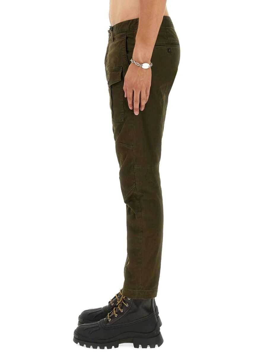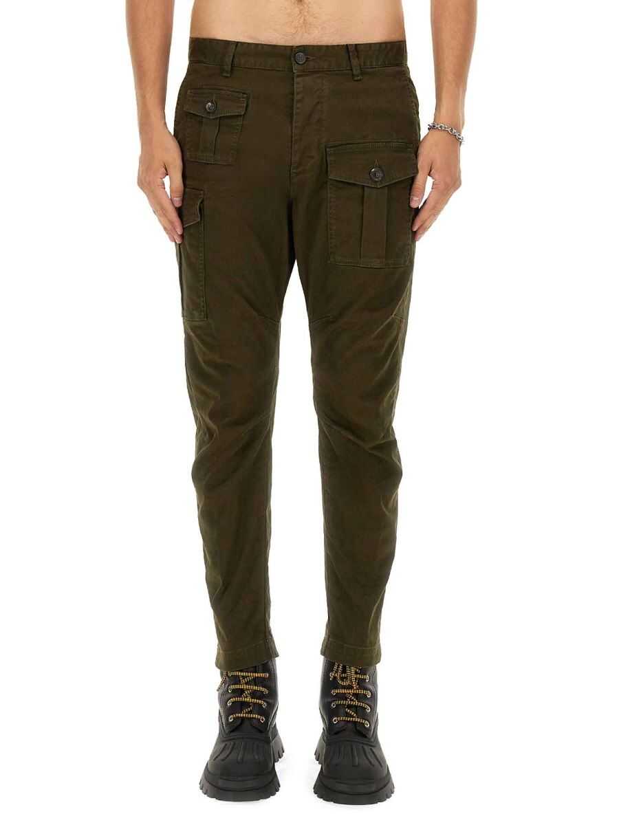coffee brown cotton silver-tone logo plaque mid-rise concealed fly and button fastening belt loops tapered leg two side slit pockets two front flap pockets side cargo pocket two rear jetted pockets