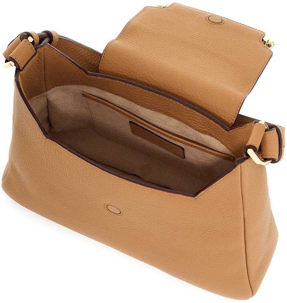 Strathberry "Multrees Hobo" shoulder bag made of soft grained leather with iconic metal Bar applied to the flap. Structured shape, magnetic closure, suede interior with one open pocket, adjustable handle and a second adjustable and detachable shoulder strap for a crossbody look. Gold-finished metalware.