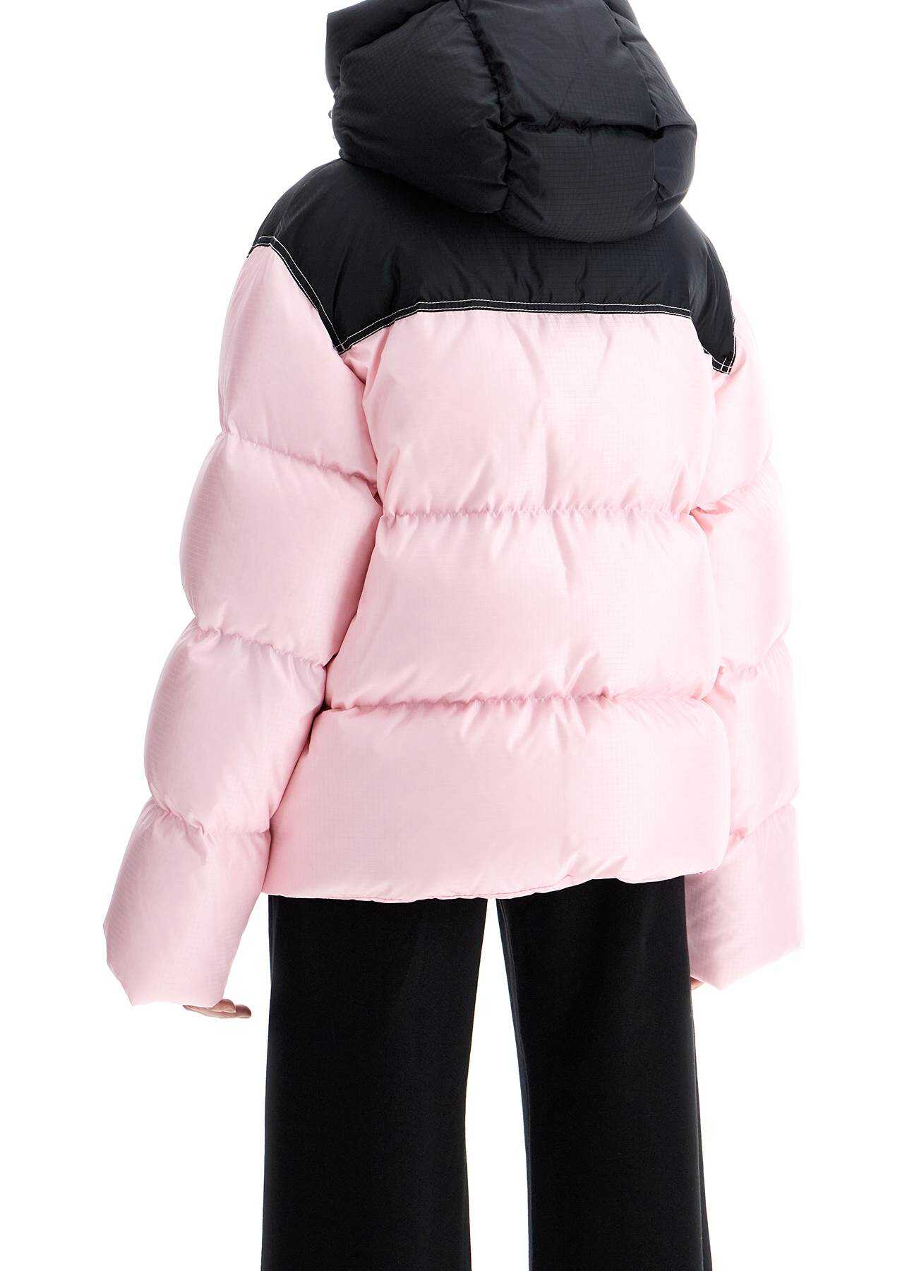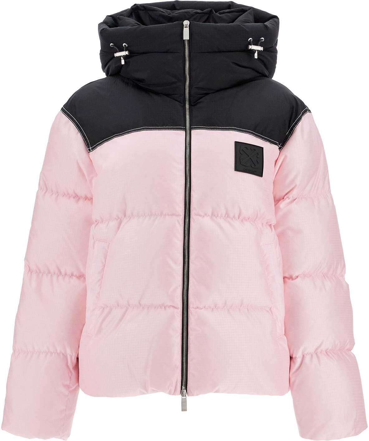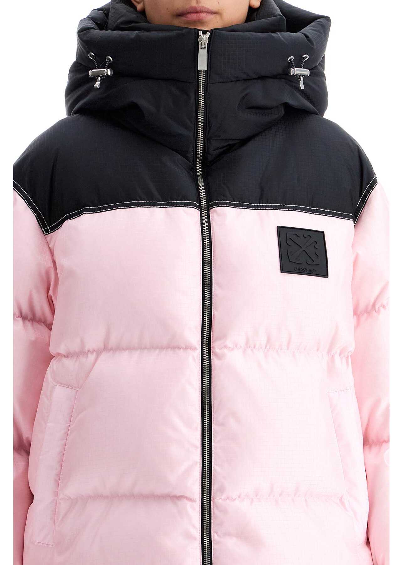 This Off-White quilted jacket is made of nylon ripstop with a color-block design and filled with real feathers. The oversized fit features an adjustable hood and hem with drawstrings, a double-slider zip closure, and two side pockets. Logo application on the chest. The model is 177 cm tall and wears size IT 40.