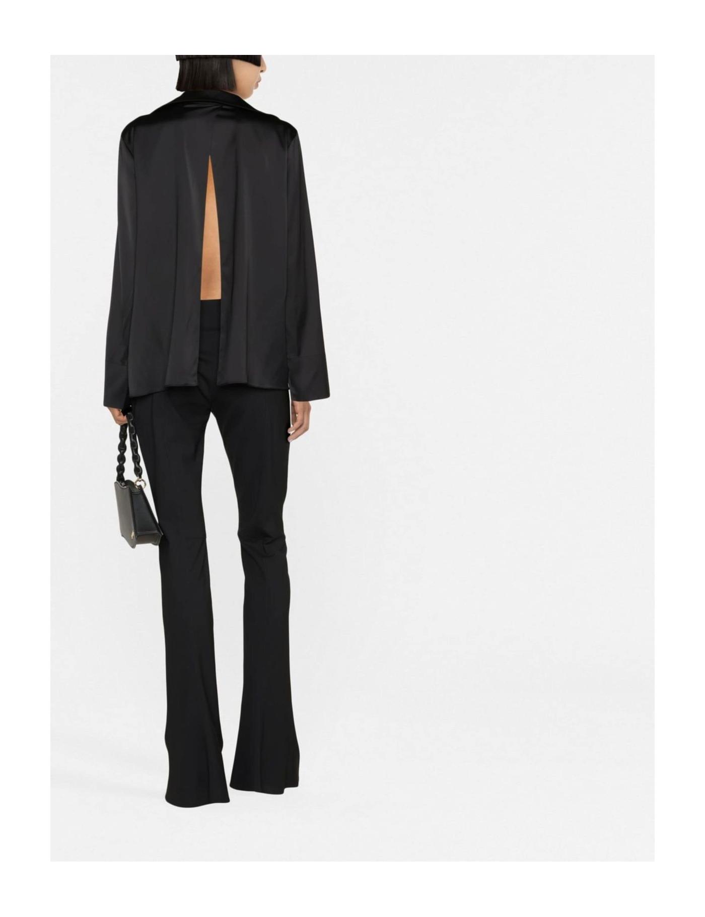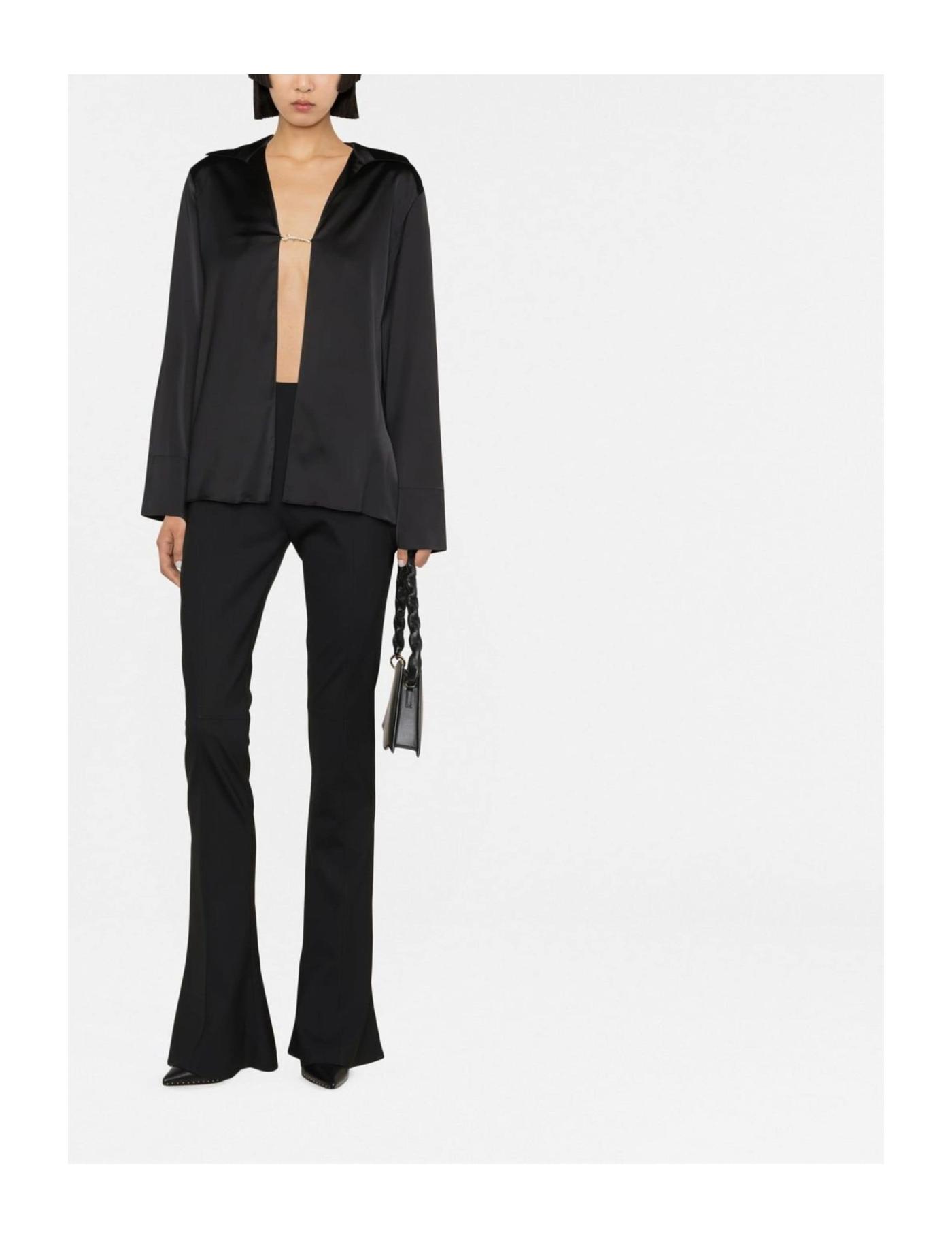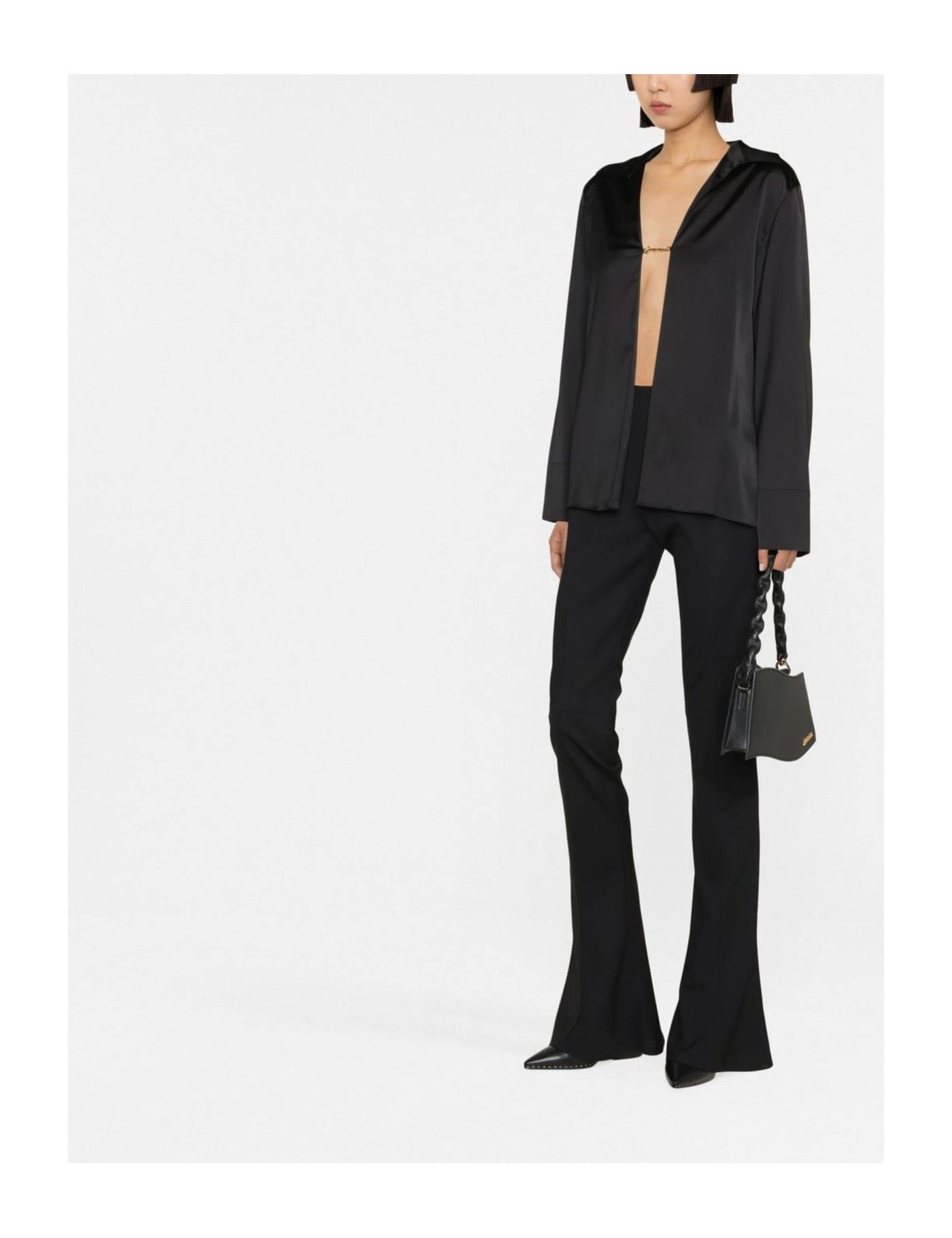 - Notte logo plaque blouse from Jacquemus featuring black, stretch-cotton, V-neck, logo plaque and long sleeves.