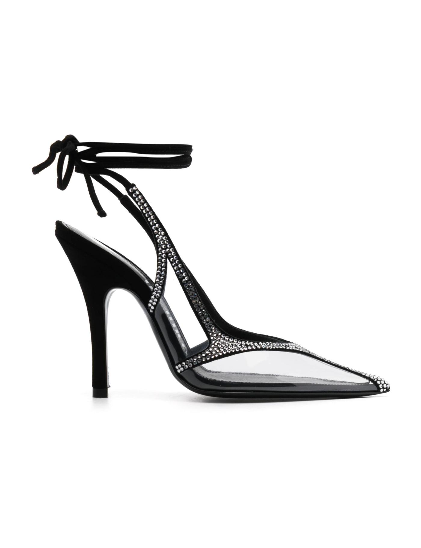The Attico’s penchant for statement silhouettes takes focus with these Venus pumps. Crafted from leather, they’re punctuated with transparent panels and traced with glittering rhinestones. The lace-up straps can be adjusted for a custom look.