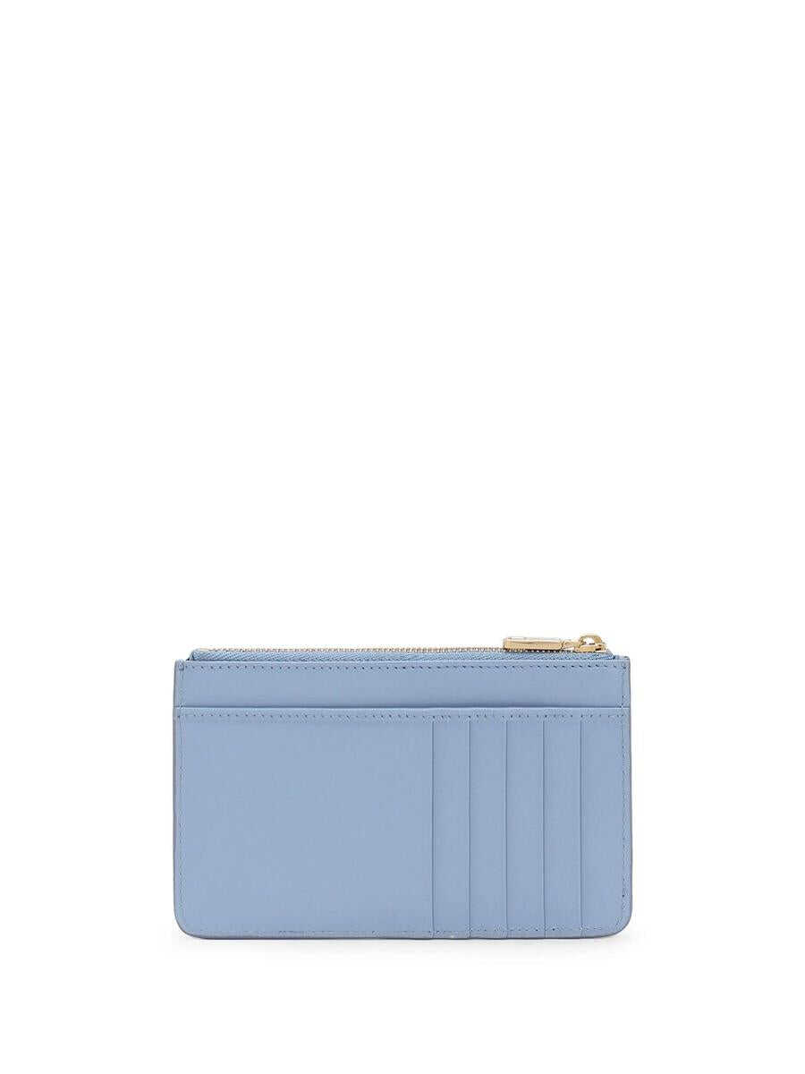 blue calf leather smooth grain tonal stitching embossed logo to the front slip pocket to the front rear slit pocket rear card slots main compartment full lining gold-tone hardware top zip fastening DEPTH: 1.0 Centimetres
