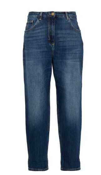 indigo blue cotton washed denim contrast stitching belt loops classic five pockets whiskering effect at the thighs gold-tone logo plaque cropped tapered leg concealed zip-fly and button fastening