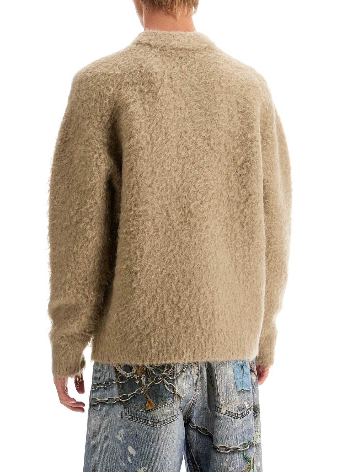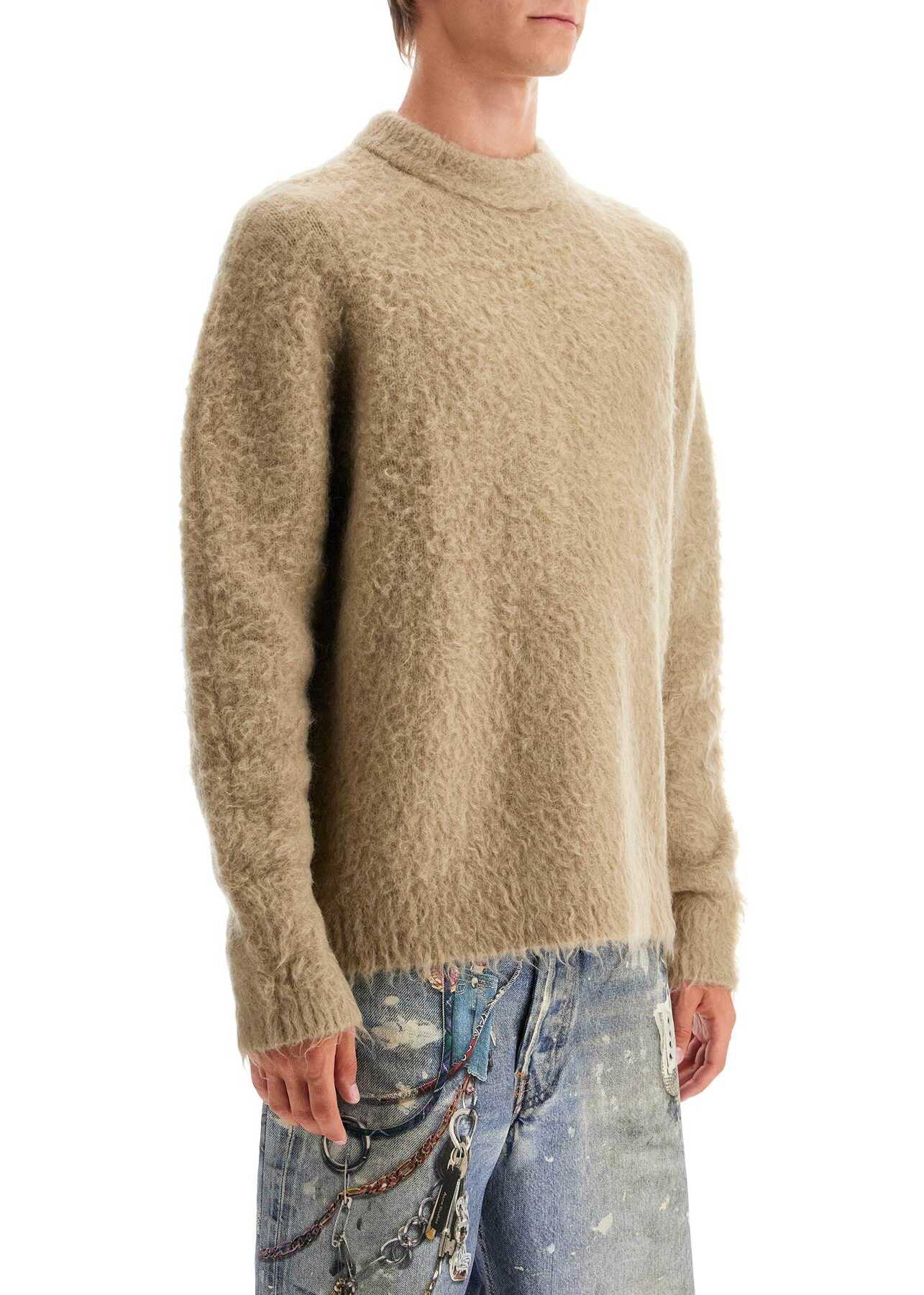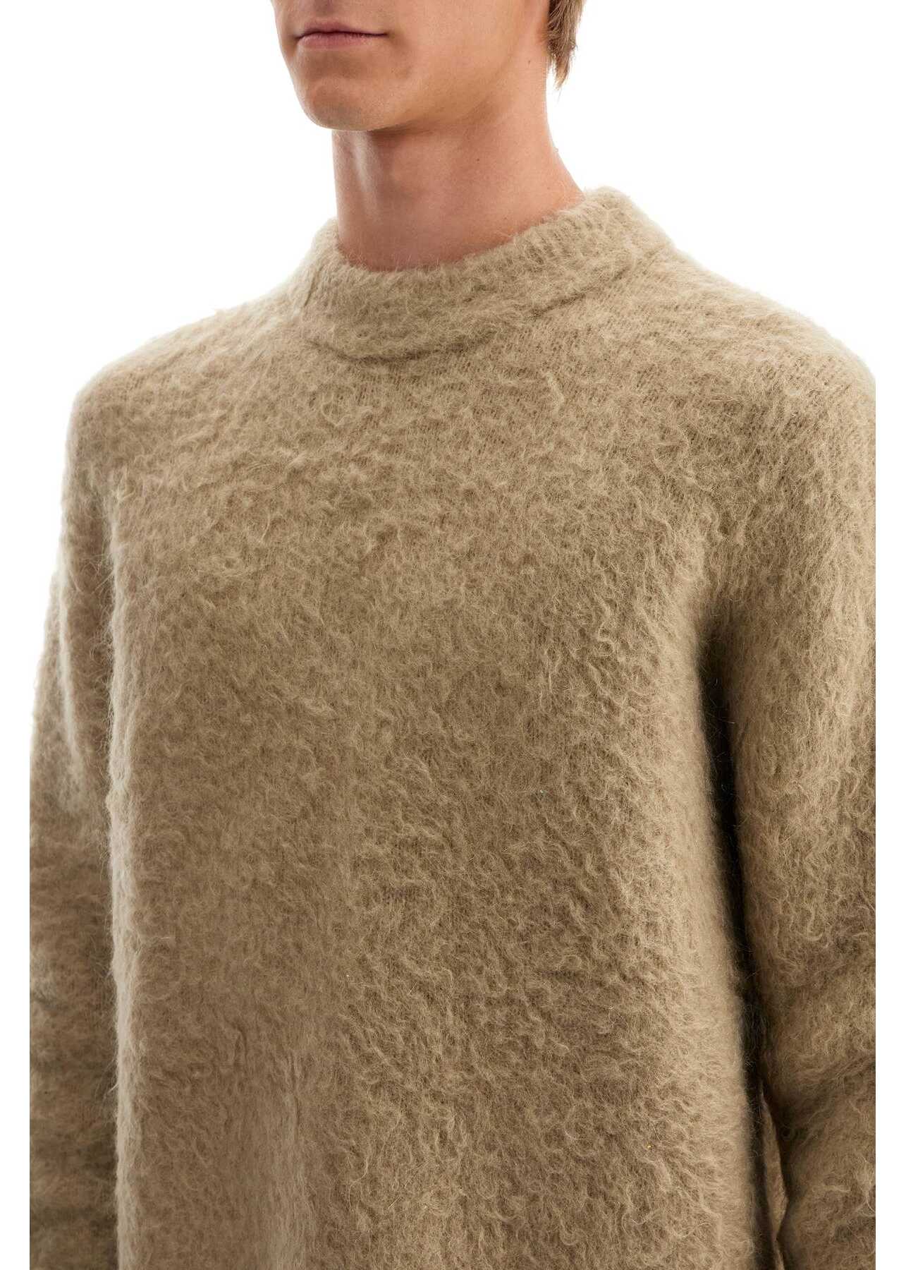 This Acne Studios crewneck sweater is made of soft stretch wool blend with a brushed finish. It has an oversized fit and the model is 187 cm tall and wears size L.