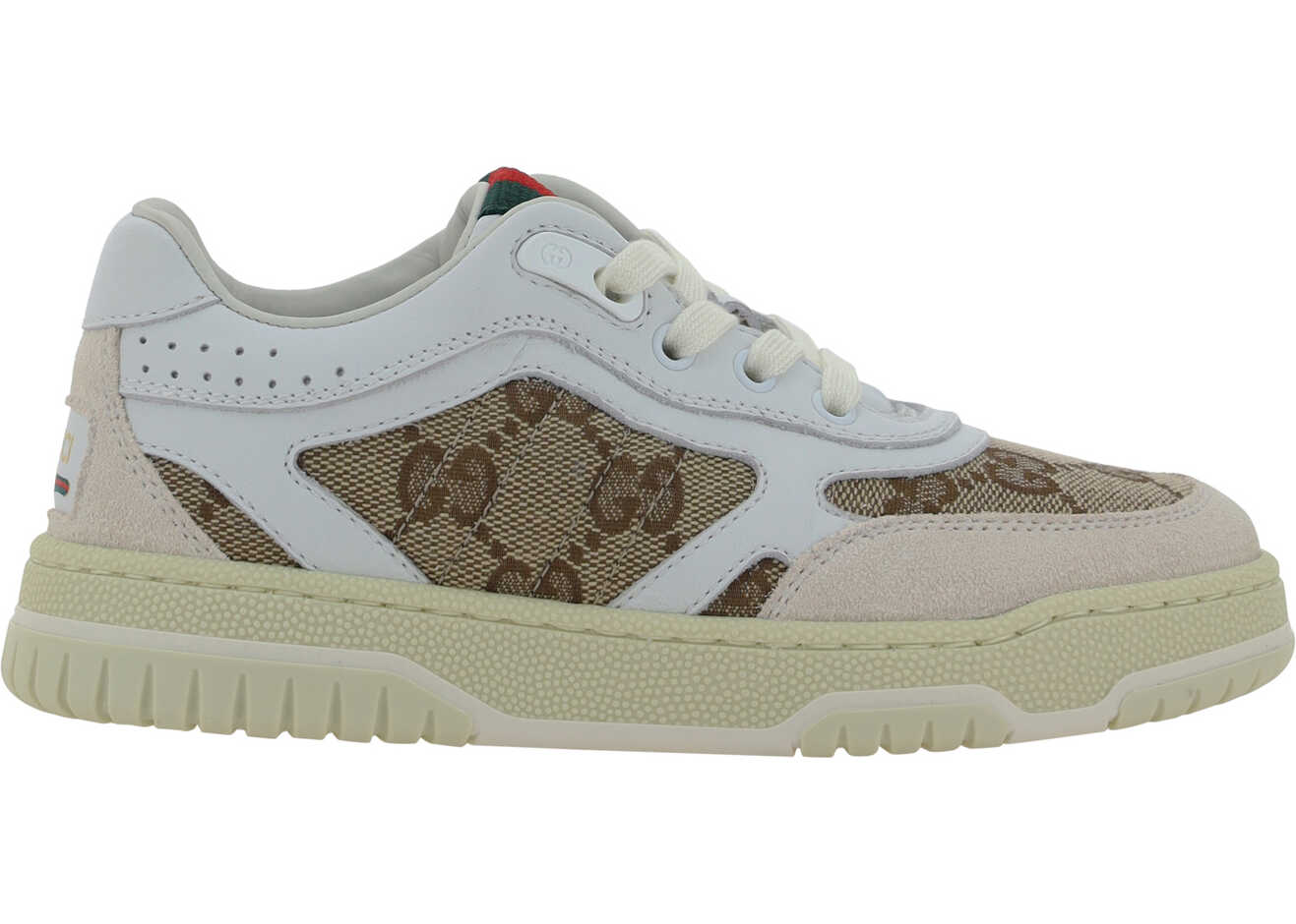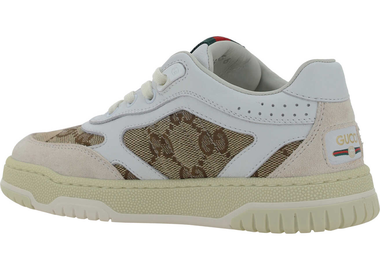 Sneakers for Boy by Gucci, front closure by laces, jacquard print with GG Supreme pattern, contrasting logo label on heel.