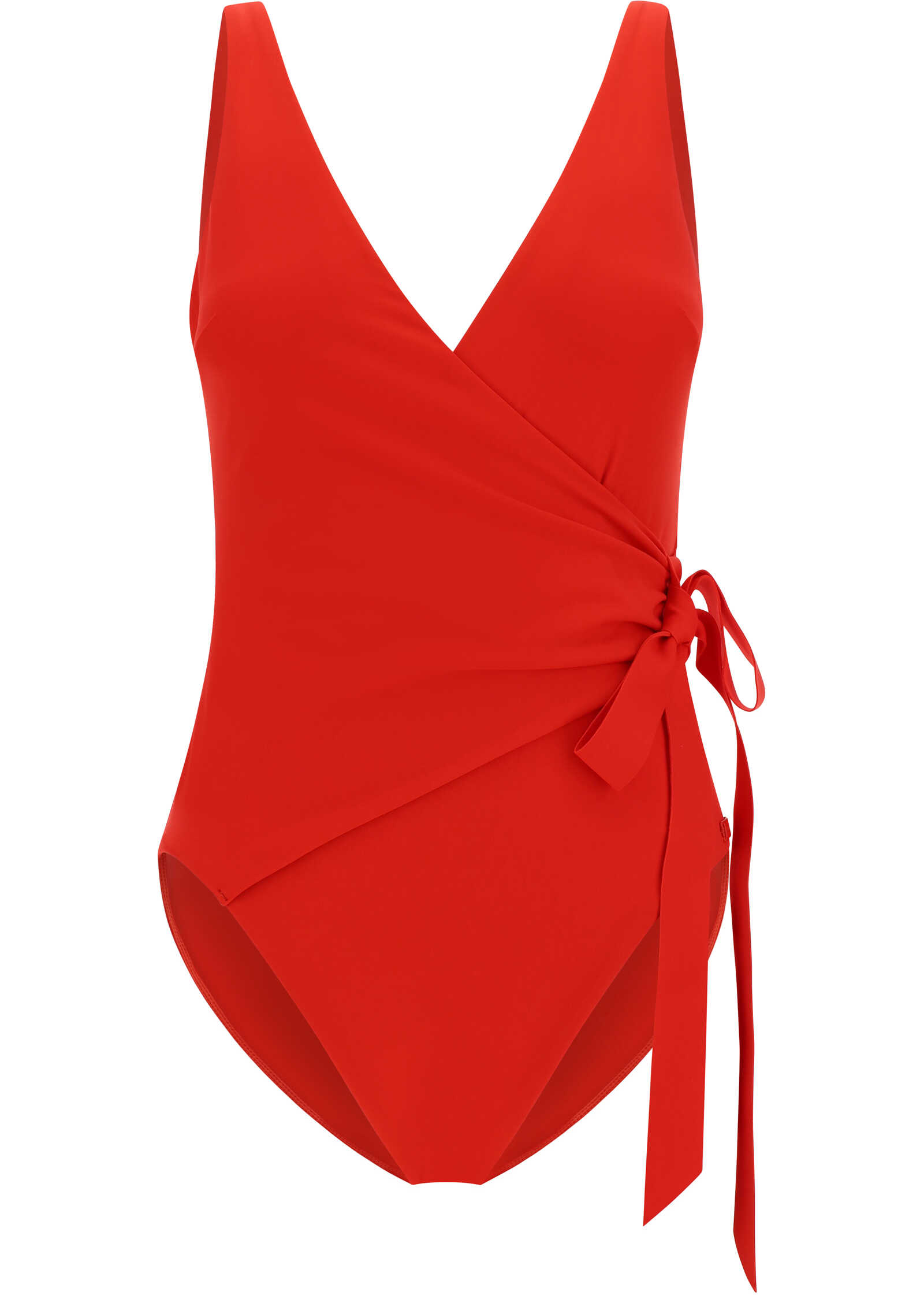 Separates Wrap Tie Swimsuit by Zimmermann, one-piece design, monochrome pattern, smock stitch detail with knotted sash with bow at waistband, double-breasted front V-neck.