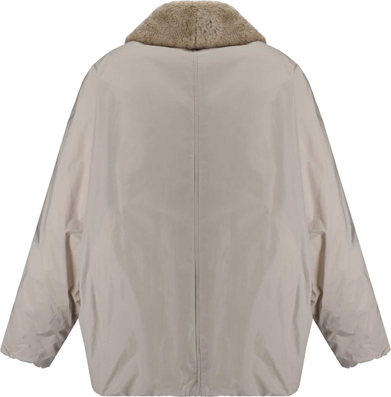 Down Jacket by Brunello Cucinelli, classic collar with removable shearling detail, front closure with contrasting buttons, batwing sleeves, elasticized cuffs, elasticized hem, monochrome pattern, regular fit.