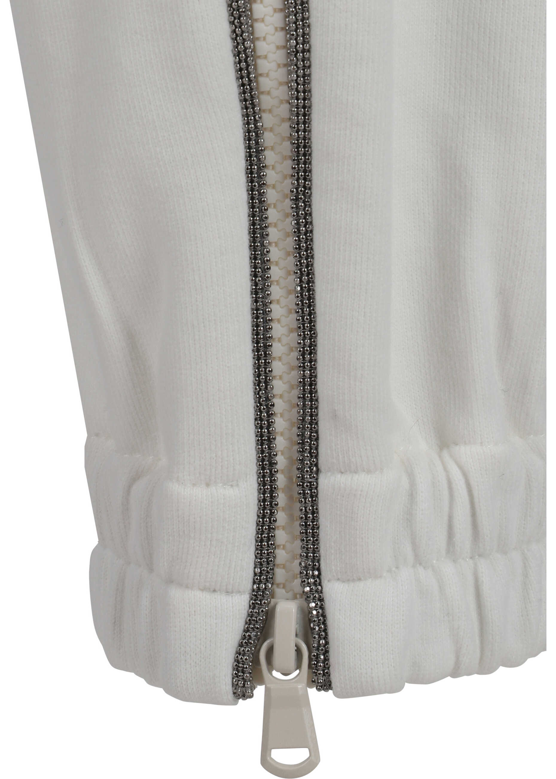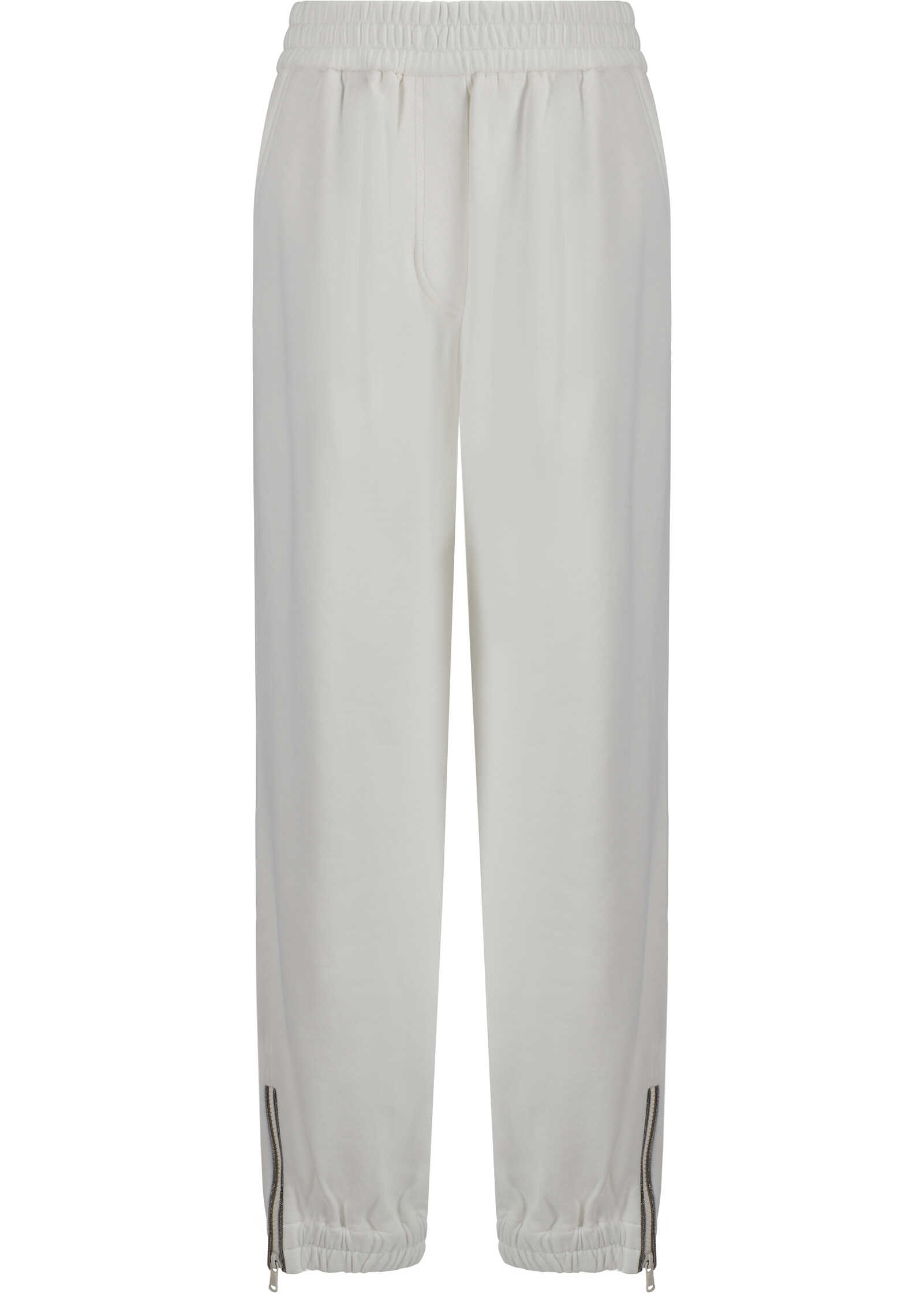 Cotton Sweatpants by Brunello Cucinelli, jogger style, elasticized waistband, two side welt pockets, two back slit pockets, adjustable zippered hem with appliqued shiny jewel detail, monochrome pattern, regular fit.
