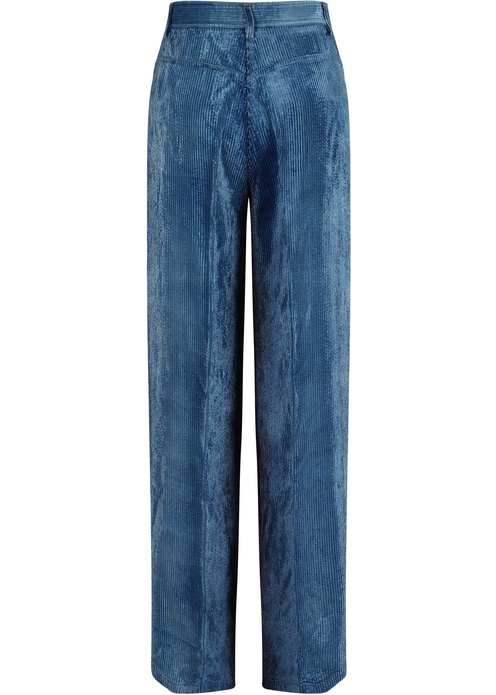 Pants by Forte_Forte, front button and zipper closure, two side slit pockets, waistband loops, velvet-effect ribbed design, regular fit.