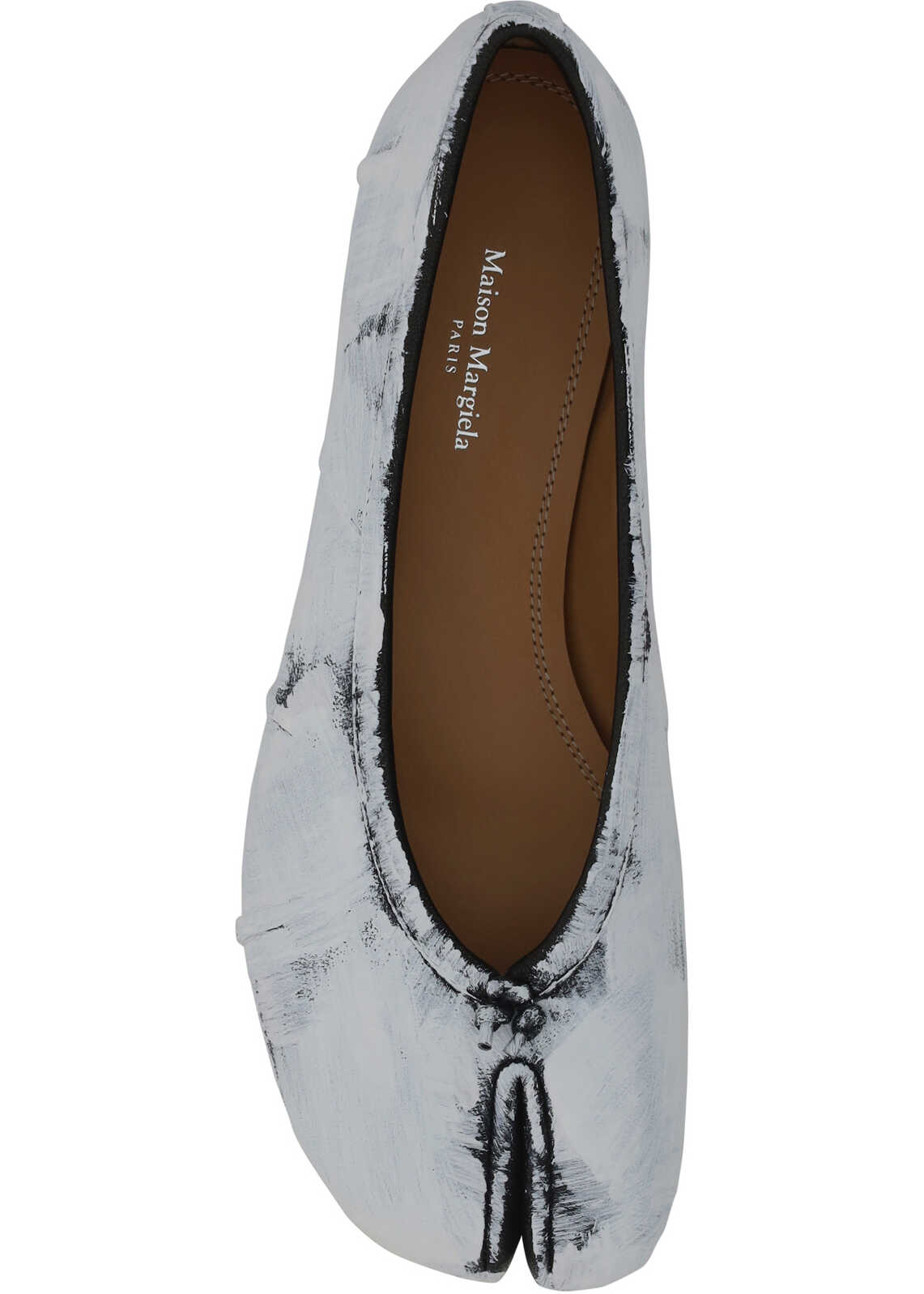Calfskin Tabi Ballerinas by Margiela, whitewash effect design, iconic Tabi toe, flat sole.