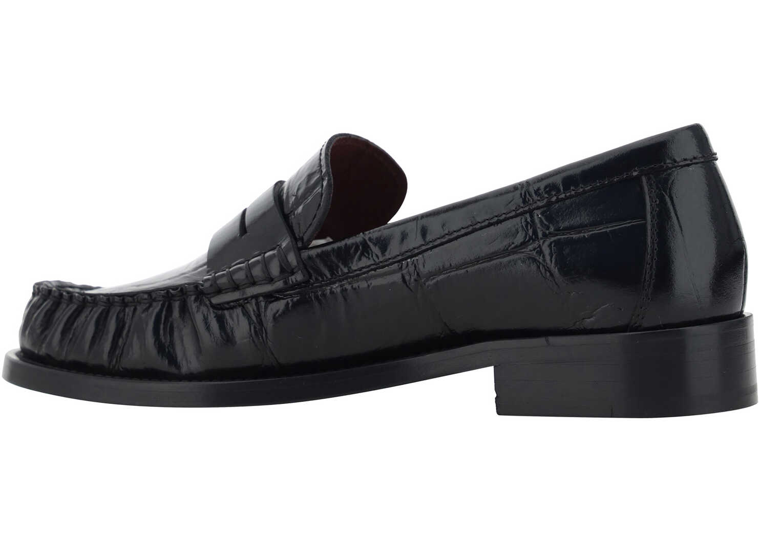 Calfskin Dylan Loafers by Paris Texas, slightly elongated round toe, leather block heel, front tray made of leather, logo-embossed insole.