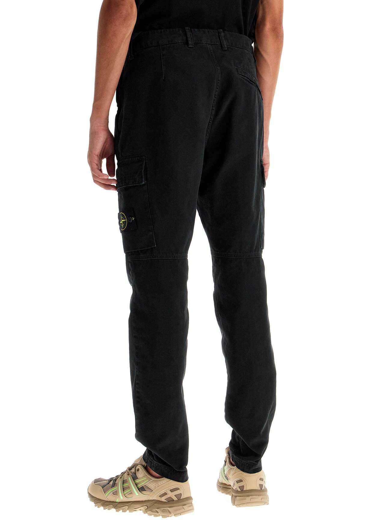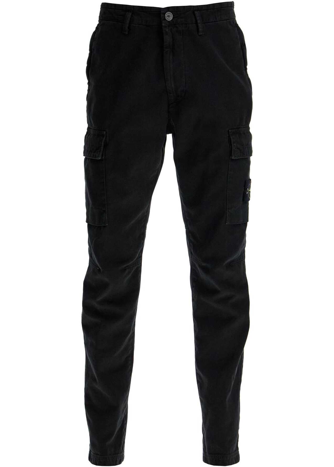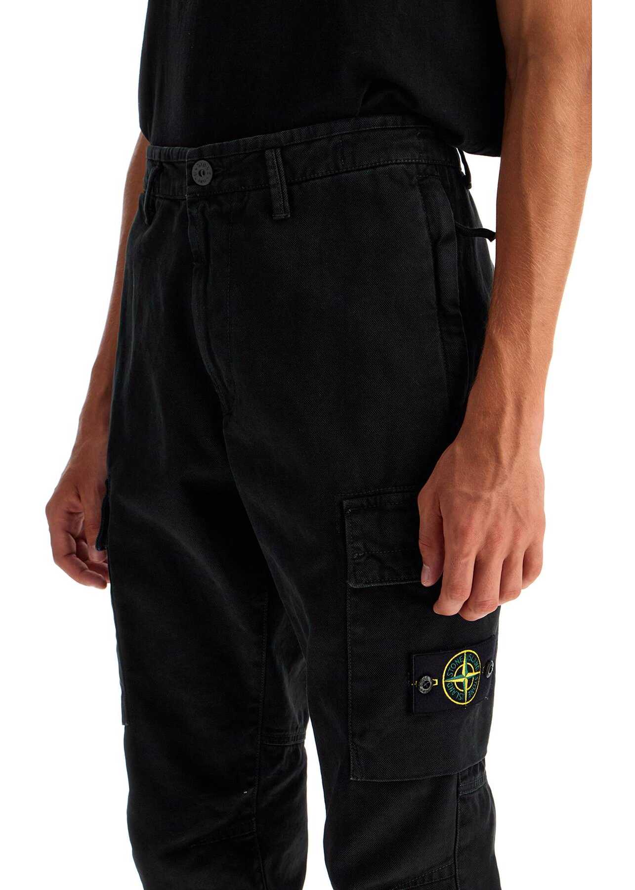 Stone Island cargo pants made of cotton with functional pockets and characterized by a tapered leg. Hidden zip closure and button. The model is 187 cm tall and wears size 31.