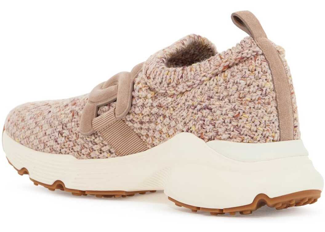 These Tod's slip-on sneakers are made of a mohair blend knit with leather chain detail. The interior is unlined with a removable insole, and features a leather back pull tab and chunky rubber sole.