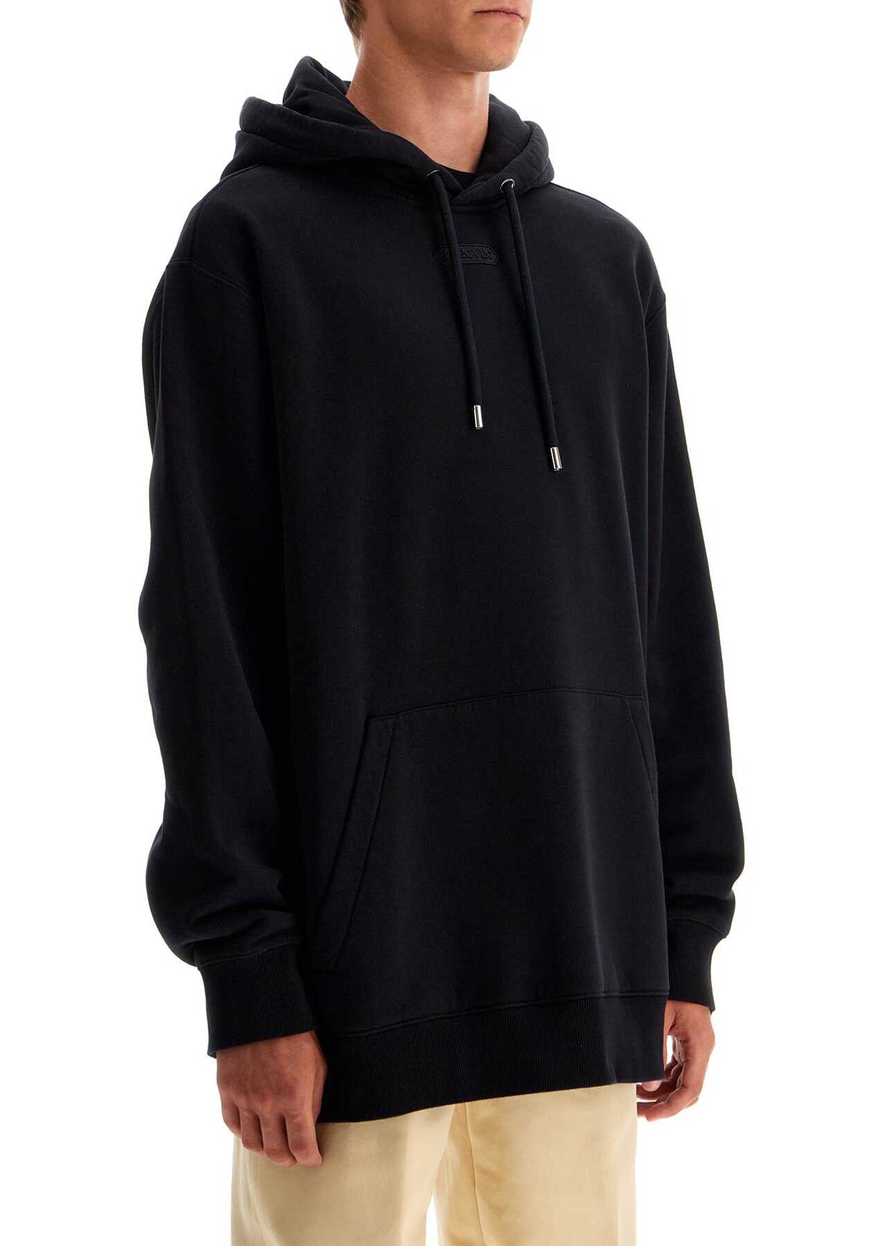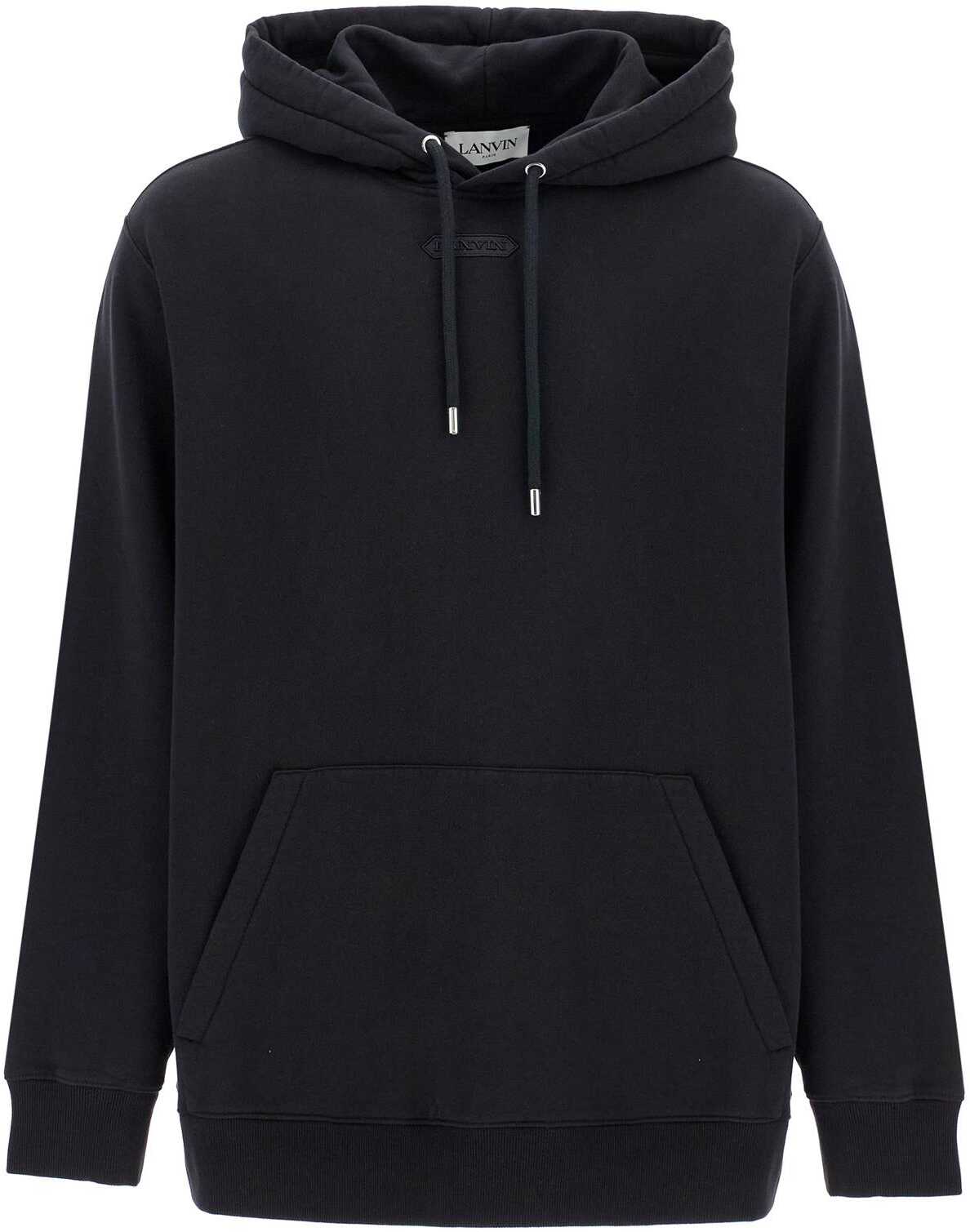 Lanvin oversized hoodie with tonal embroidered logo on the front. Made of cotton jersey with a soft brushed interior, it features a classic design with drawstring at the neck, kangaroo pocket and ribbed cuffs and hem. The model is 187 cm tall and wears size L.