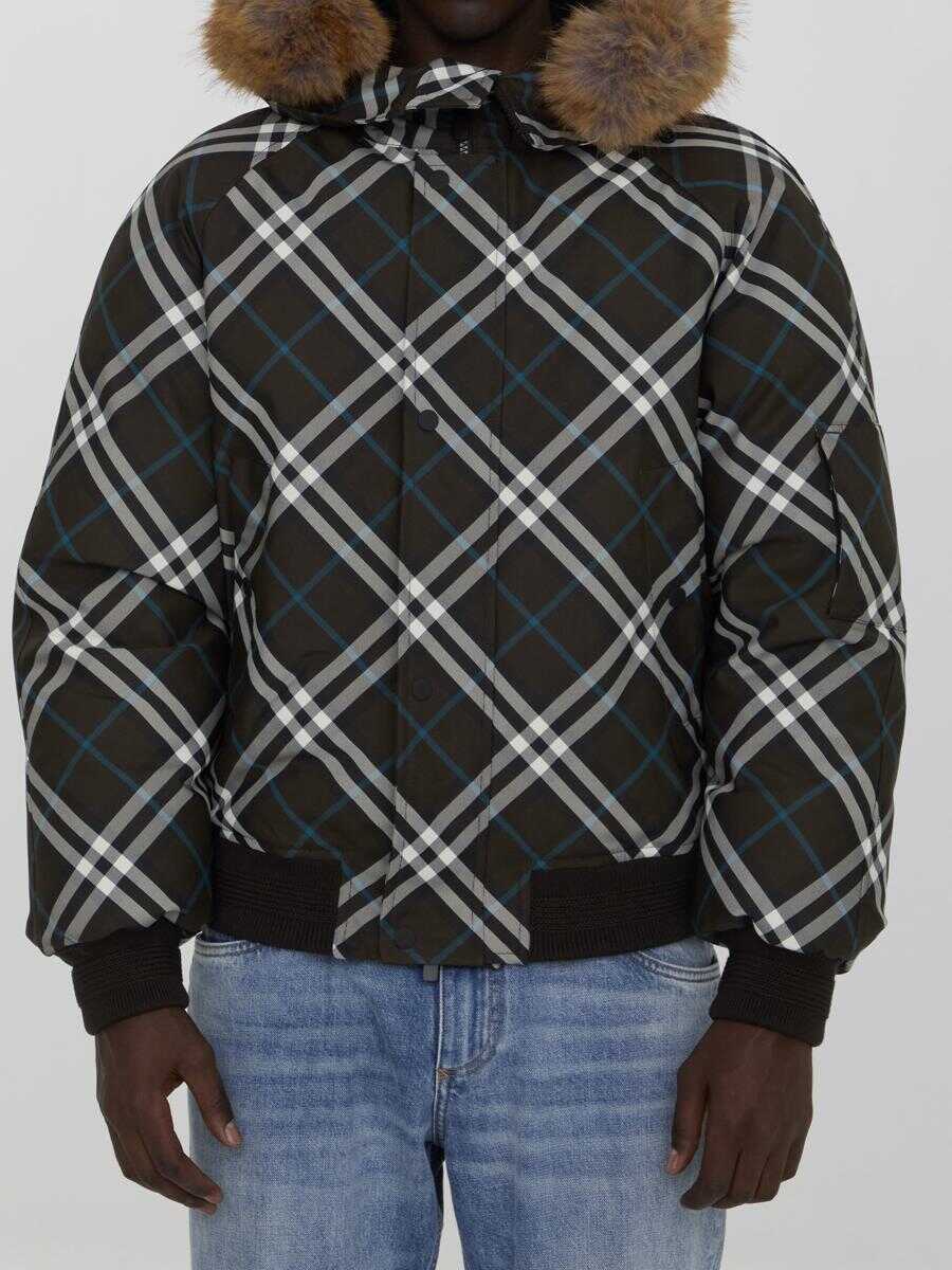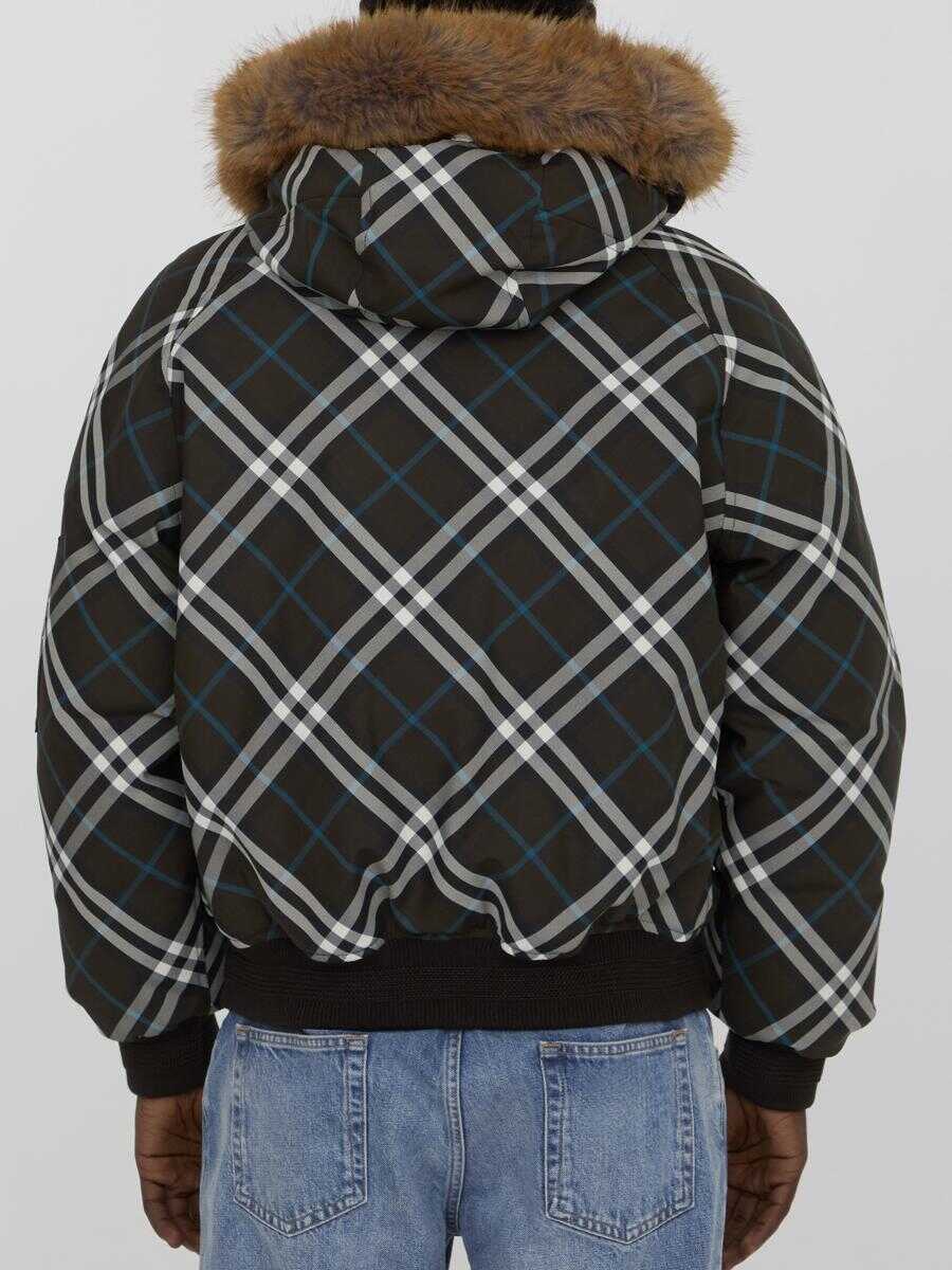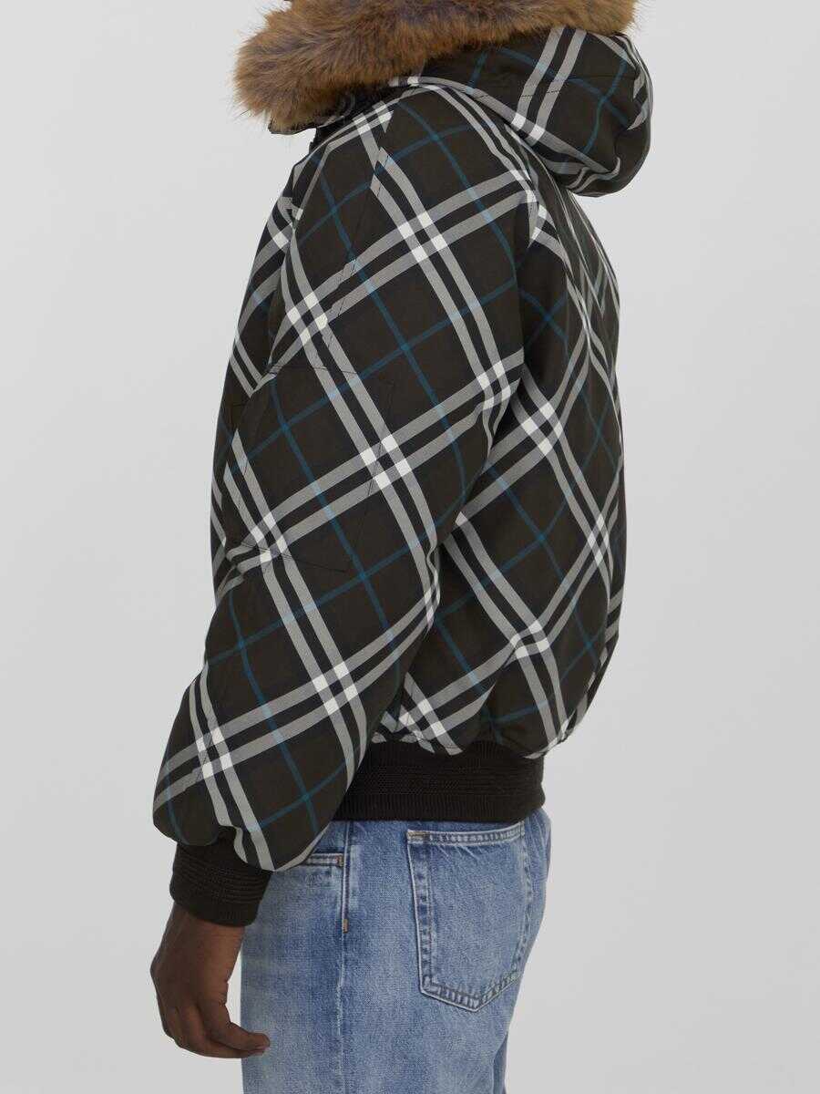 Nylon jacket with Burberry Check motif. It features adjustable and detachable faux fur hood, front zip and press-stud closure, two side press-stud welt pockets, one zip pocket on left sleeve, two interior zip pockets and rib-knit trims on cuffs and hem. Regular fit.