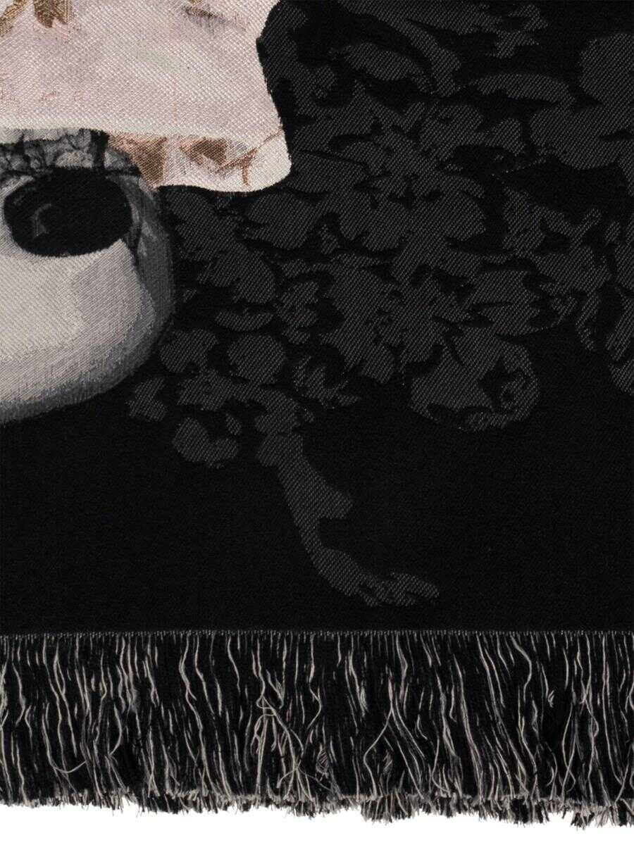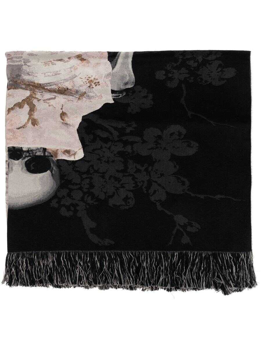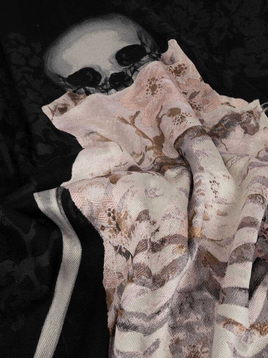 multicolour wool skull print to the front fringed edge wraparound style Length: 200.0 Centimetres