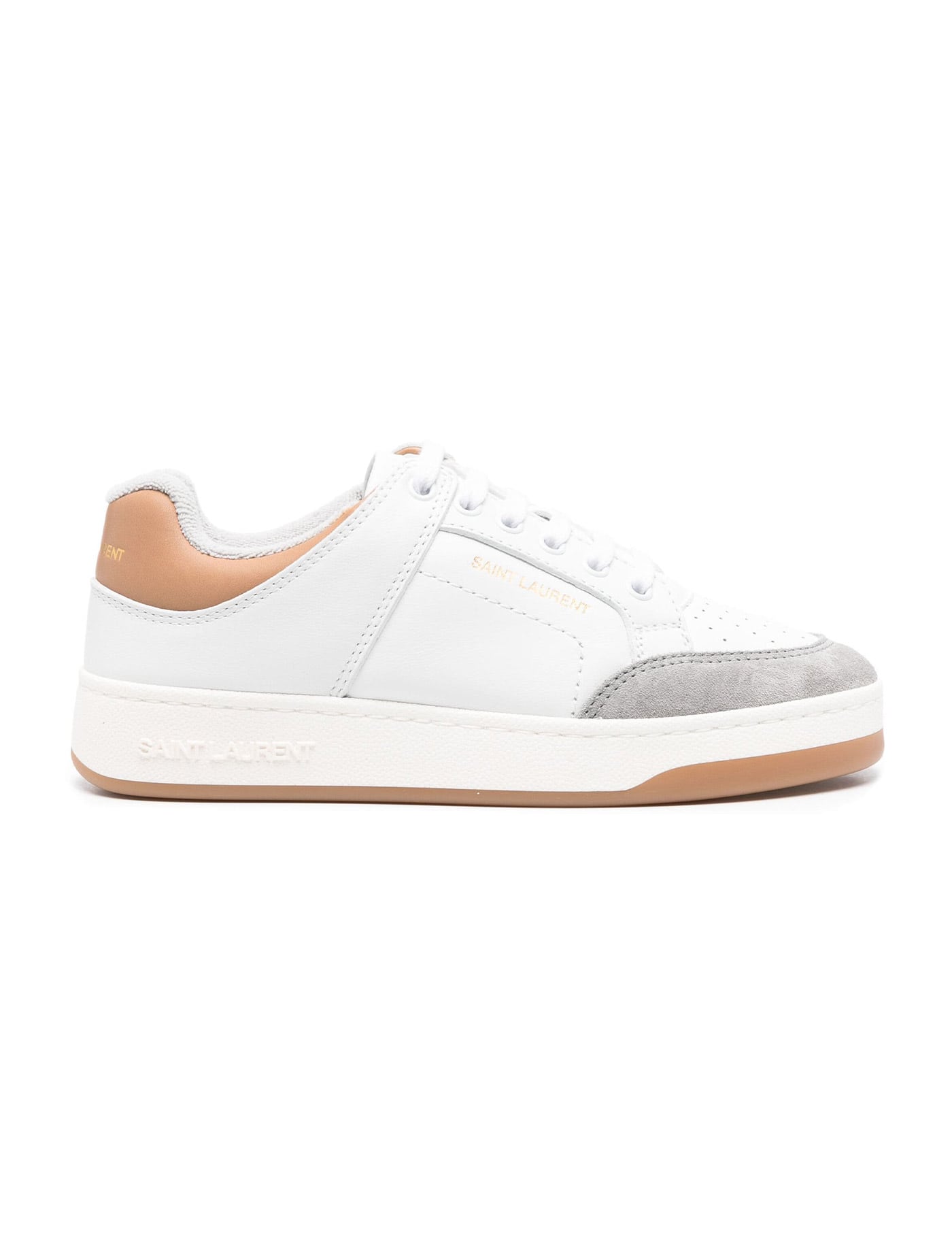 Saint Laurent's SL/61 sneakers combine smooth leather and suede for an elegant and refined look. Featuring a gold signature and distinctive details, they offer comfort and style with a durable rubber sole. A touch of class, made in Italy.