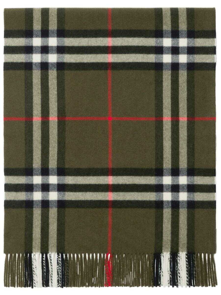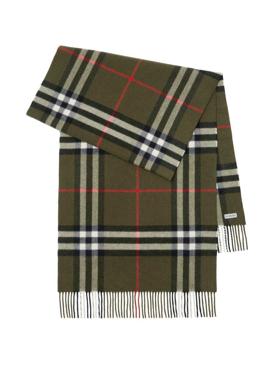 olive green house check pattern cashmere fringed edge logo tag long length Length: 200.0 Centimetres WIDTH: 52.0 Centimetres