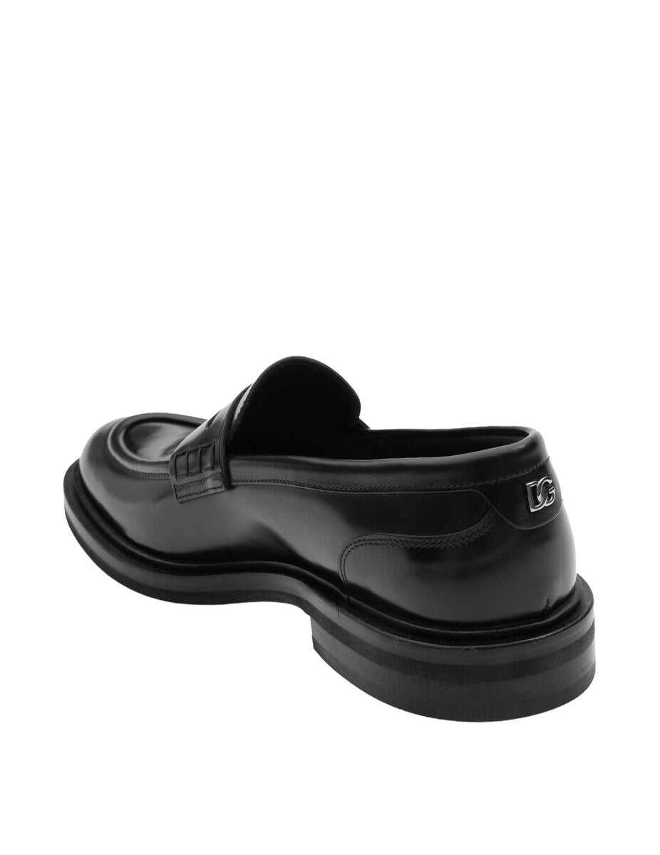 Brushed leather loafers Black colour Metal logo Model with almond tip Leather sole with rubber bottom