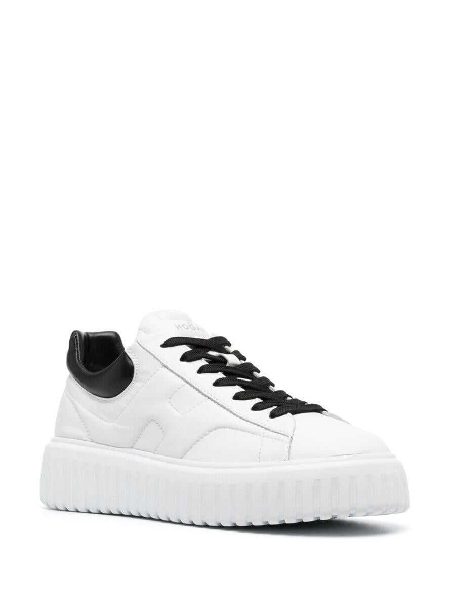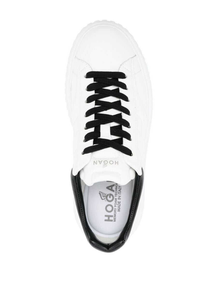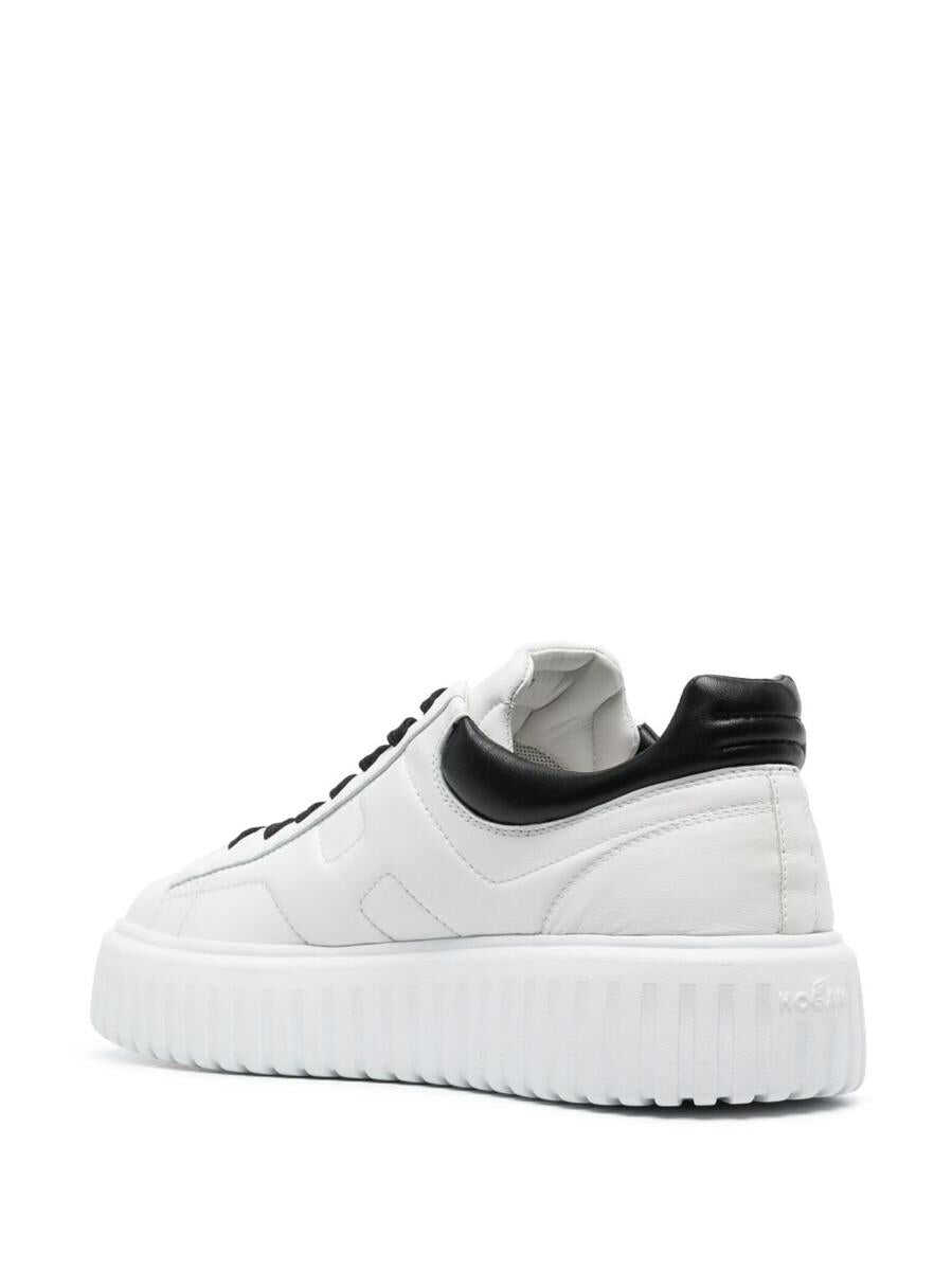 Hogan H-Stripes white calf leather sneakers by Hogan. Extralight sole with vertical stripes and wave pattern on the tread. Contrasting black heel. Iconic H logo on the side. Top closure with black laces. - Hogan - Calf leather - White - Side logo - Contrasting heel - Men