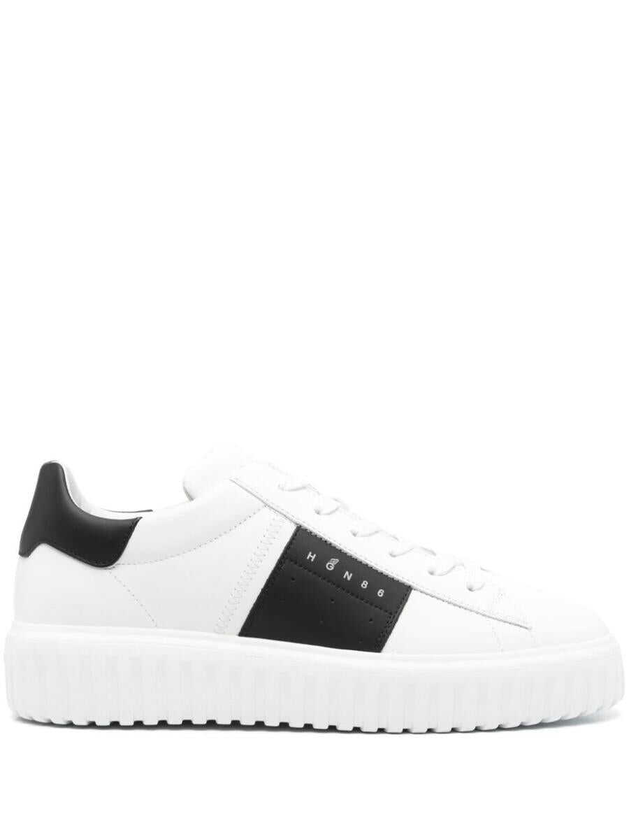 - Hogan - Sneakers with insert design - Calf leather - White - Side logo print - Tongue with embossed logo - Perforated detail - Round toe - Front lace-up closure - Padded ankle - Mesh lining - Insole with logo - Chunky rubber sole