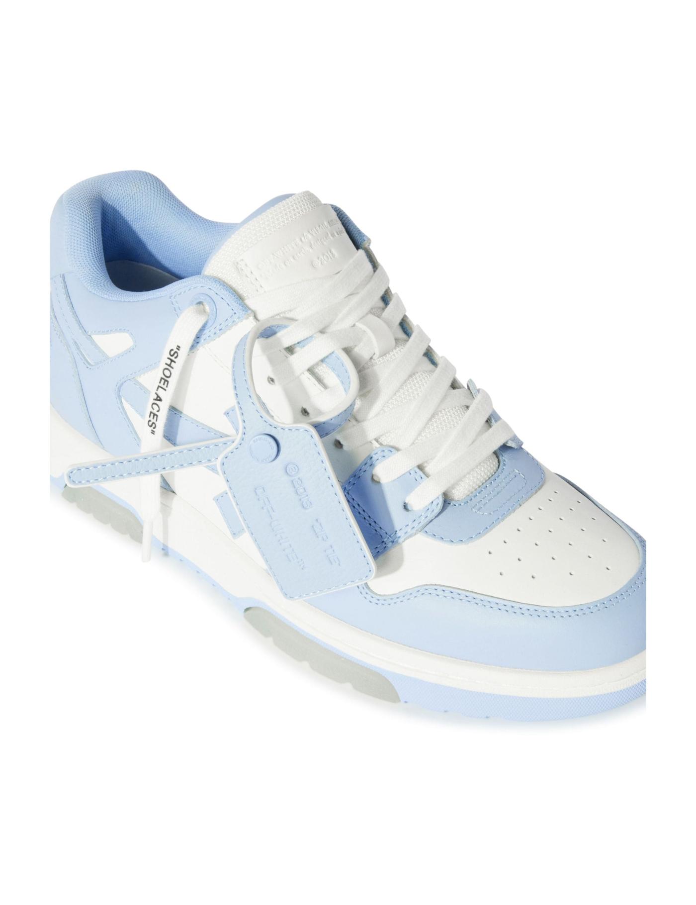 Off-White updates the classic Out Of Office sneakers with this AW23 iteration. Made from leather, it features a two-tone panelled design that contrasts blue elements against the white background. On the sides, the signature Arrow motif gives the pair a recognisable touch.