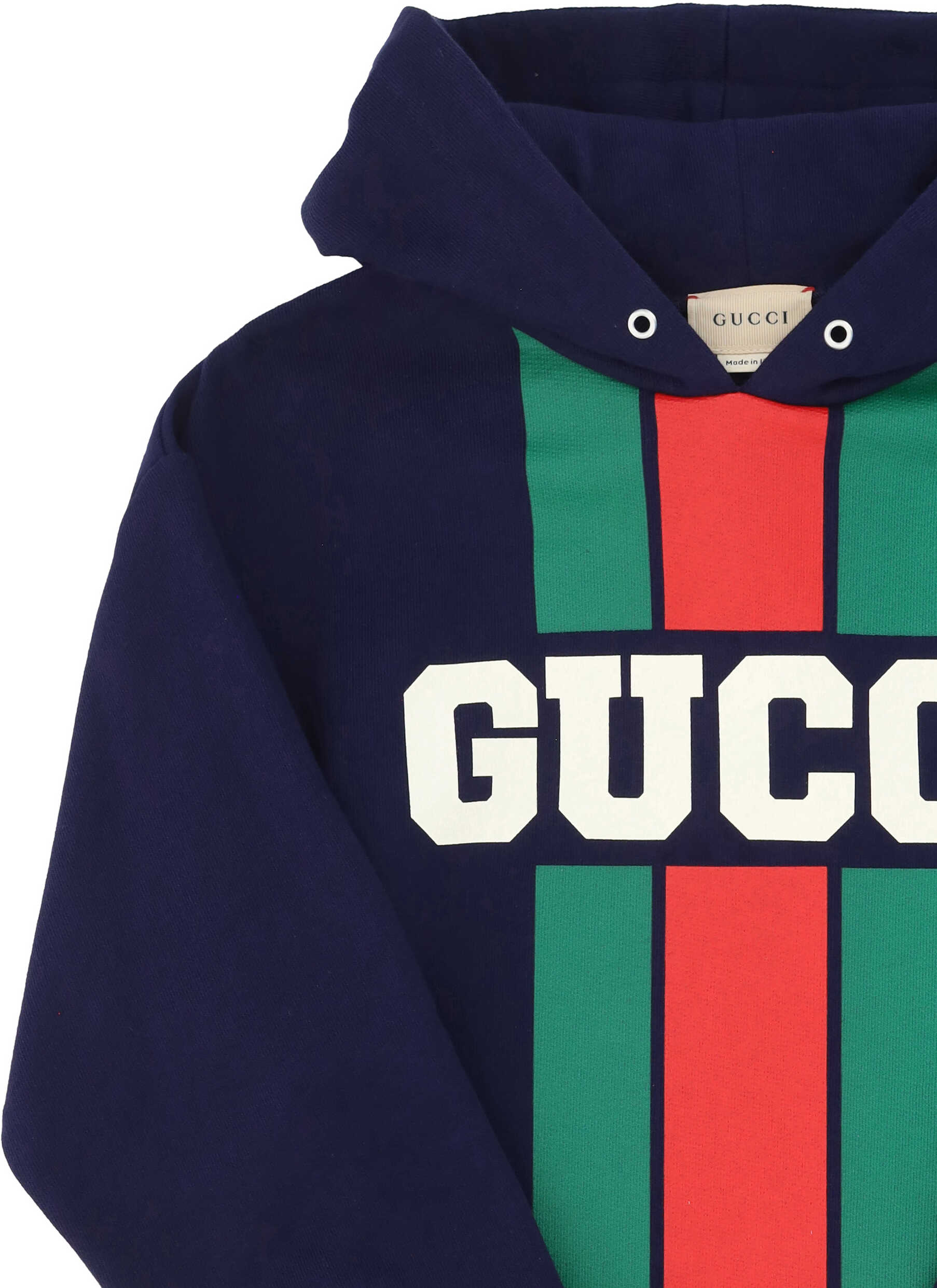 Cotton Sweatshirt for Boy by Gucci features ribbed cuffs, ribbed hem, graphics and iconic brand logo contrasting on front.