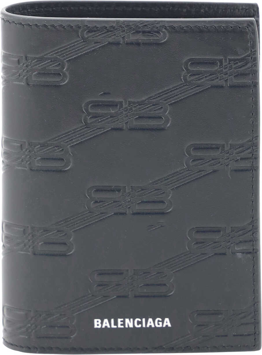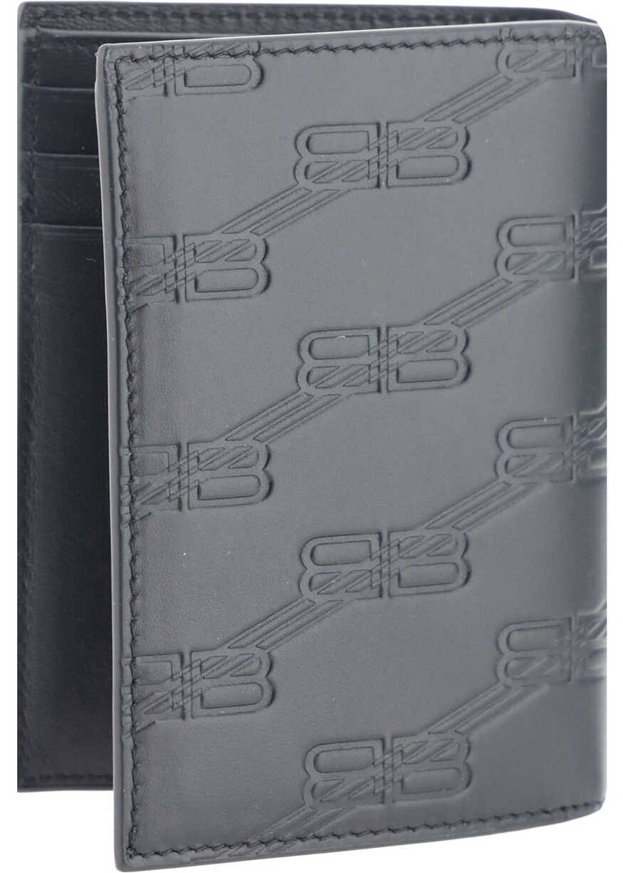 Leather Wallet by Balenciaga, bill compartments, iconic all-over embossed BB logo of the brand, brand signature pressure-stamped inside.