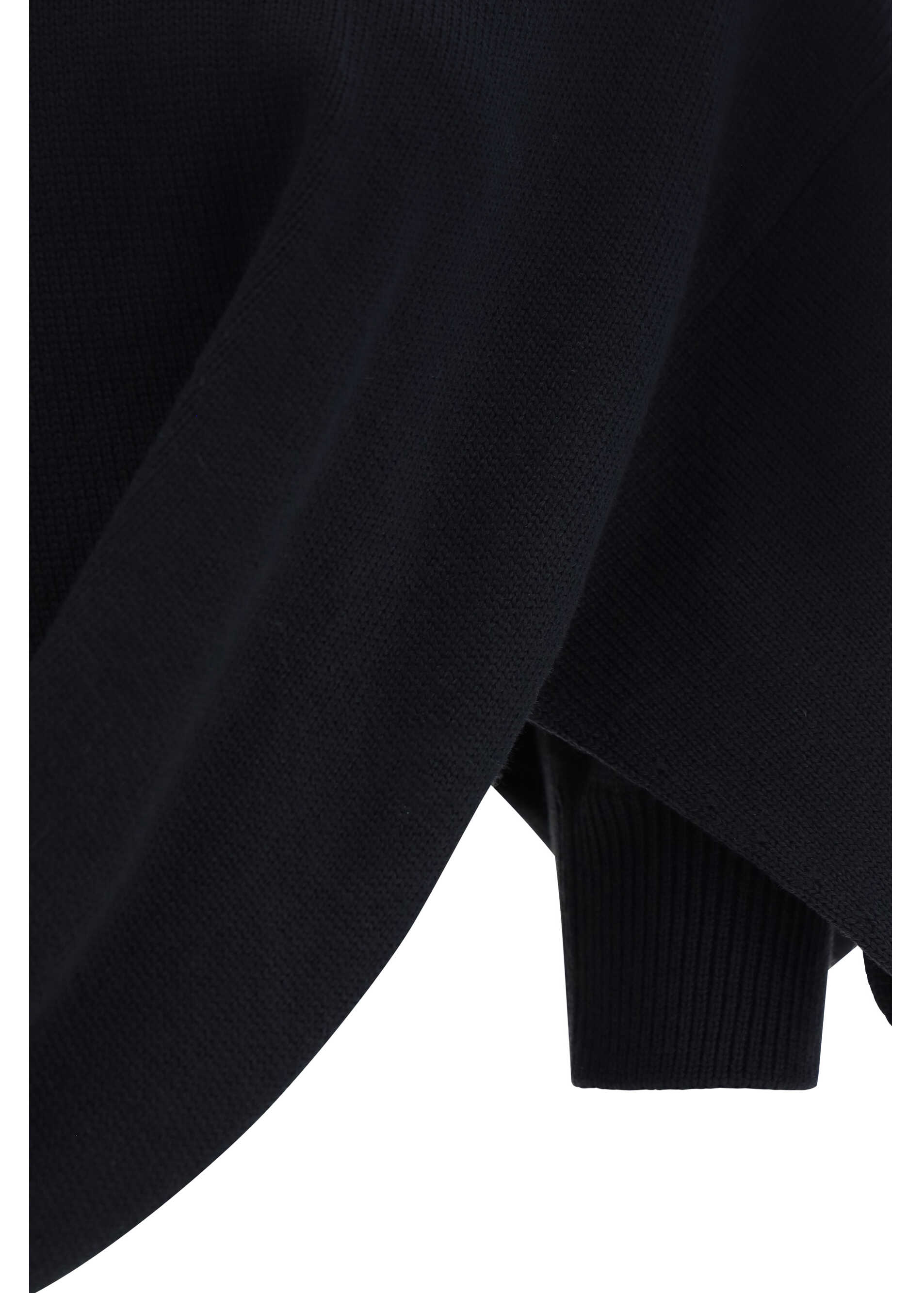 Wool Turtleneck Sweater by Alaïa featuring ribbed high neck, ribbed cuffs, deconstructed design with side panel opening and left inner sleeve perimeter, asymmetric hem, monochrome pattern.