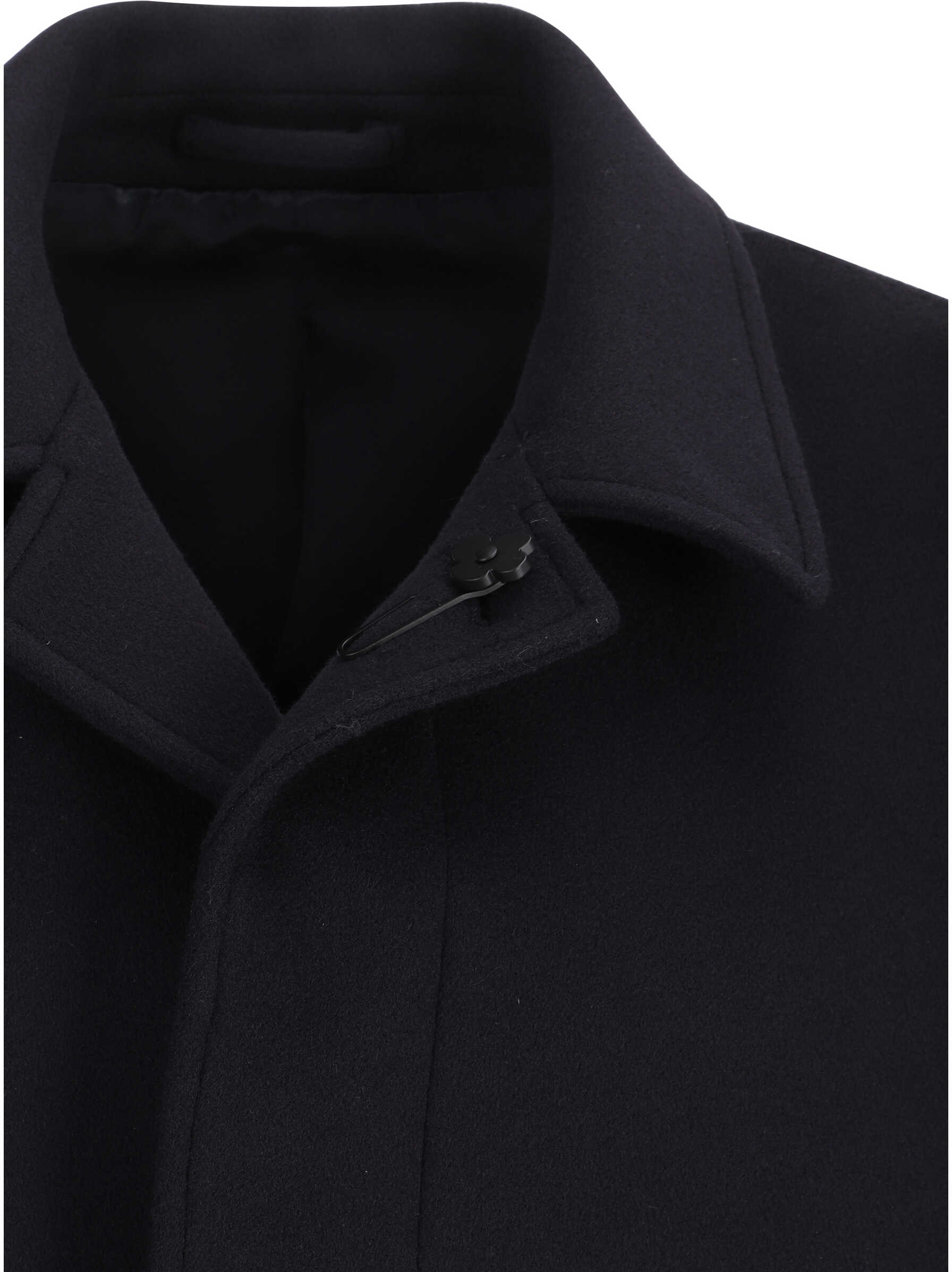Virgin Wool Coat by Lardini, classic collar, front button closure, two side welt pockets, mélange pattern, iconic pin applique on front, one back slit, regular fit.