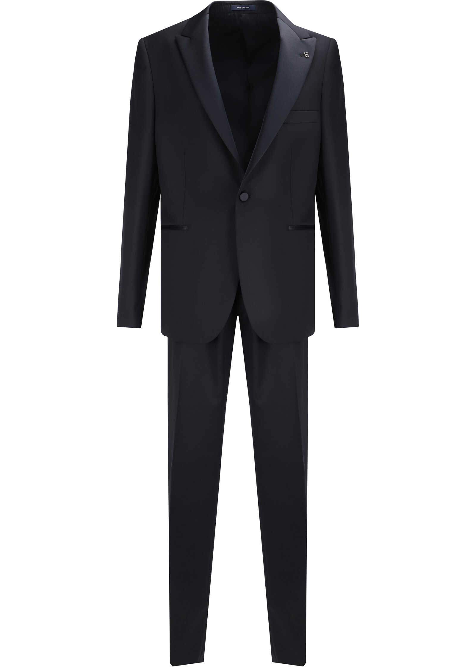 Tagliatore's Virgin Wool Suit is the epitome of elegance and sophistication. The virgin wool blazer features a front closure with matching buttons, a classic design enhanced by two welt pockets on the front and a slit pocket for a functional touch. A peaked lapel lends a refined look, while the brand's iconic logo appliqué on the lapel adds a distinctive detail. Classic virgin wool pants complete the look with a front zipper and hook-and-eye closure, as well as two side slash pockets and two welt pockets on the back. Belt loops on the waistband allow you to add a personal touch to the suit.