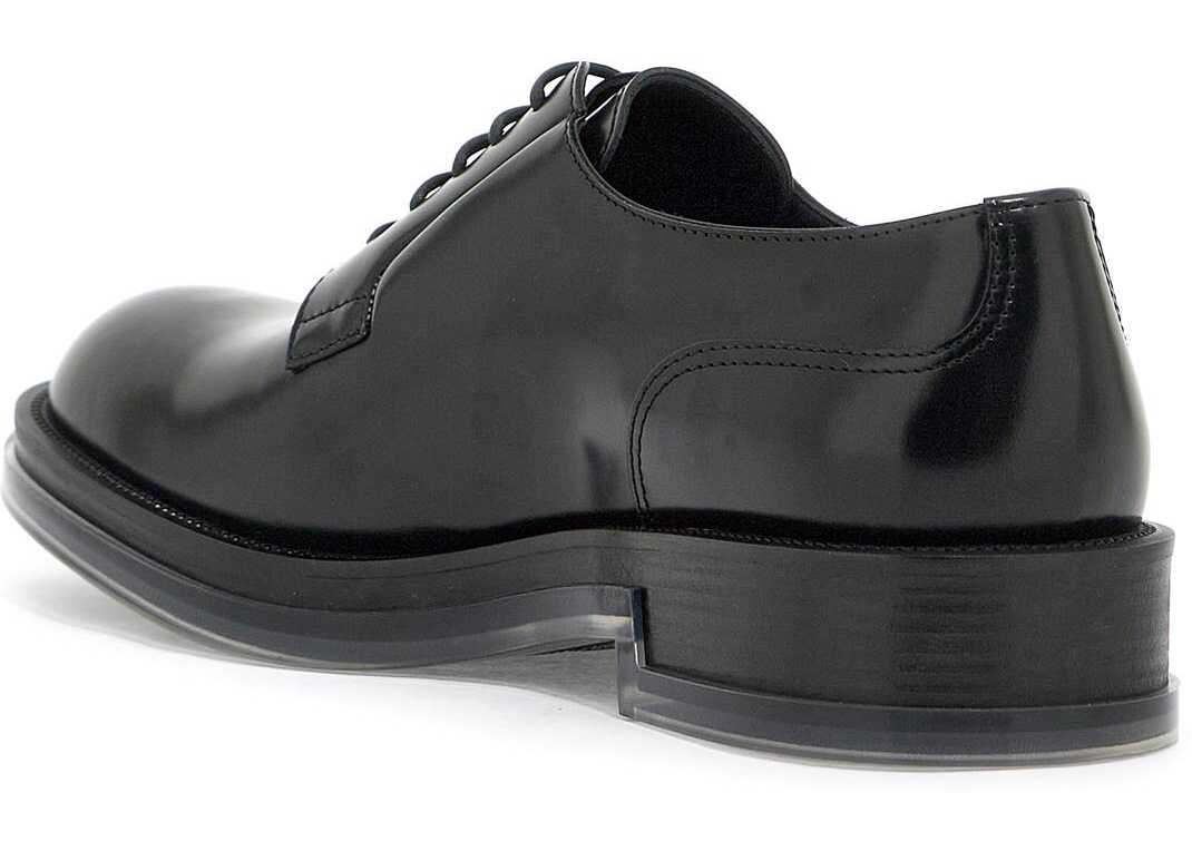 The Float lace-up shoes by Alexander McQueen are made of glossy leather and feature a thick welt and transparent sole that creates a floating effect. The interior is lined with leather and spare laces are included.