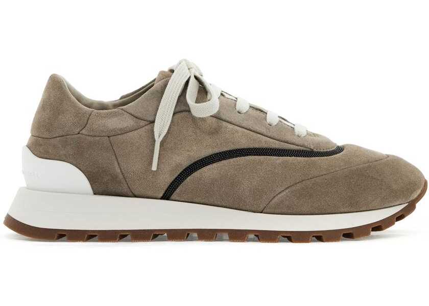 These Brunello Cucinelli sneakers are made of quilted suede leather and embellished with nickel-free monile embroidery. The lining is made of fabric, with a removable insole and the brand's lettering logo imprinted on the rubber insert at the back and on the lightweight rubber sole with TPU tread.